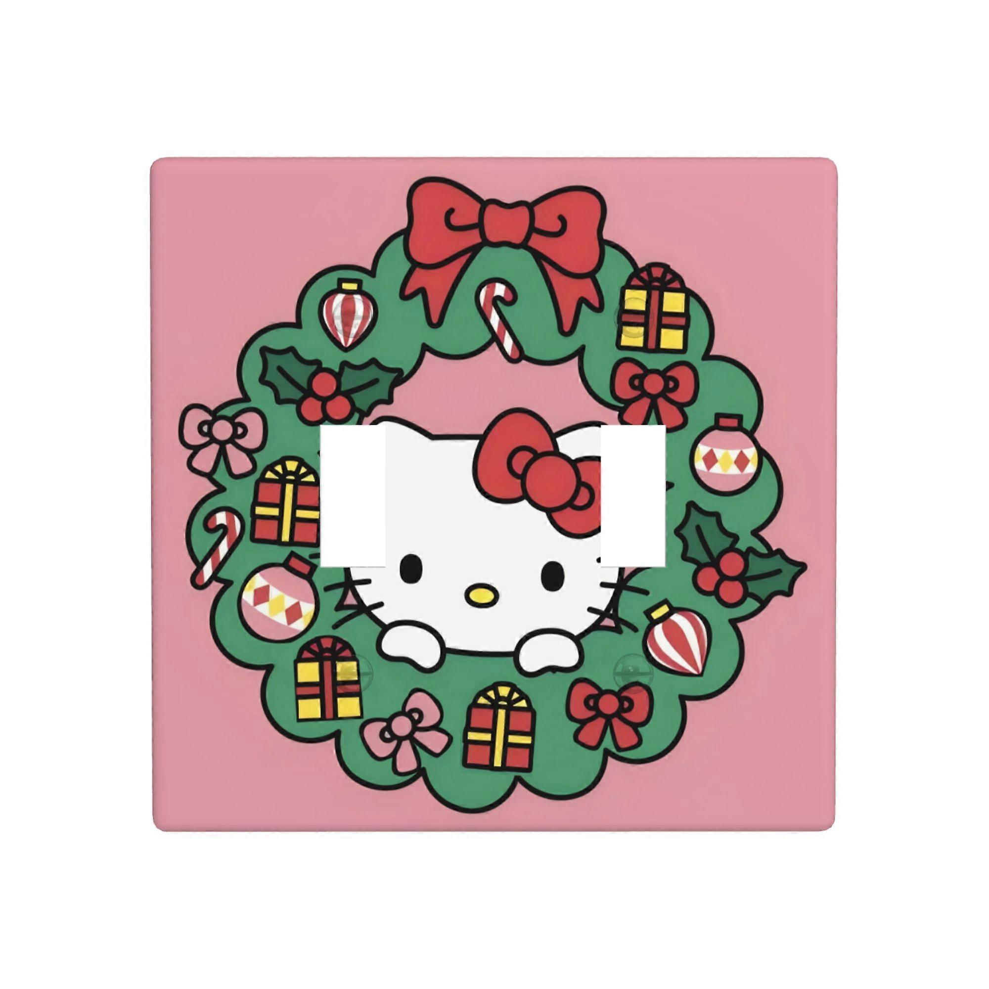 Hello Kitty Christmas print 4.5x4.5" PC switch cover, compatible with standard wall plates, for home, bedroom, kitchen decor