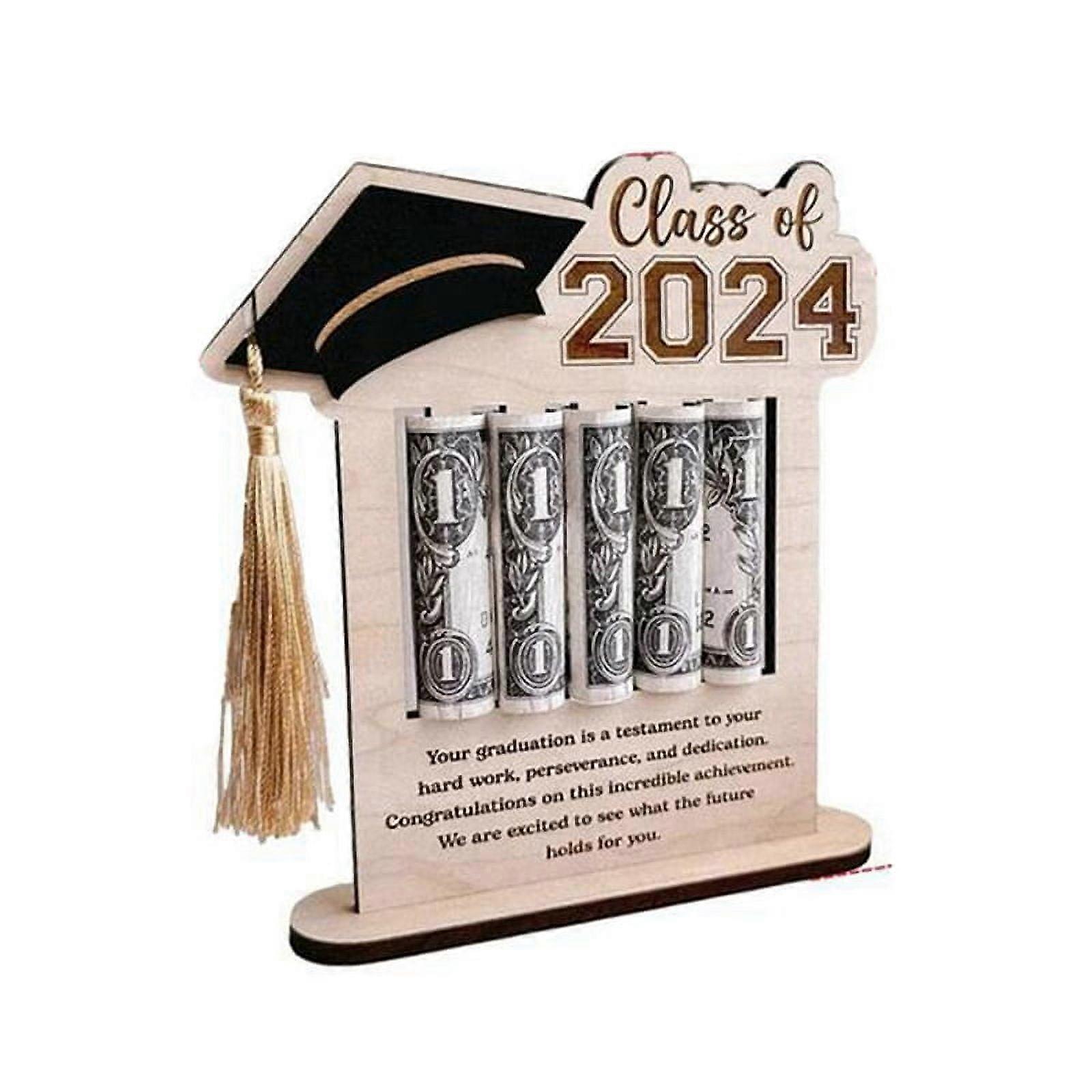 Money Card Holder 2024 Graduation Cash Holder Wooden Congrats Card Money Clip for Home Desktop Decor Favors Black