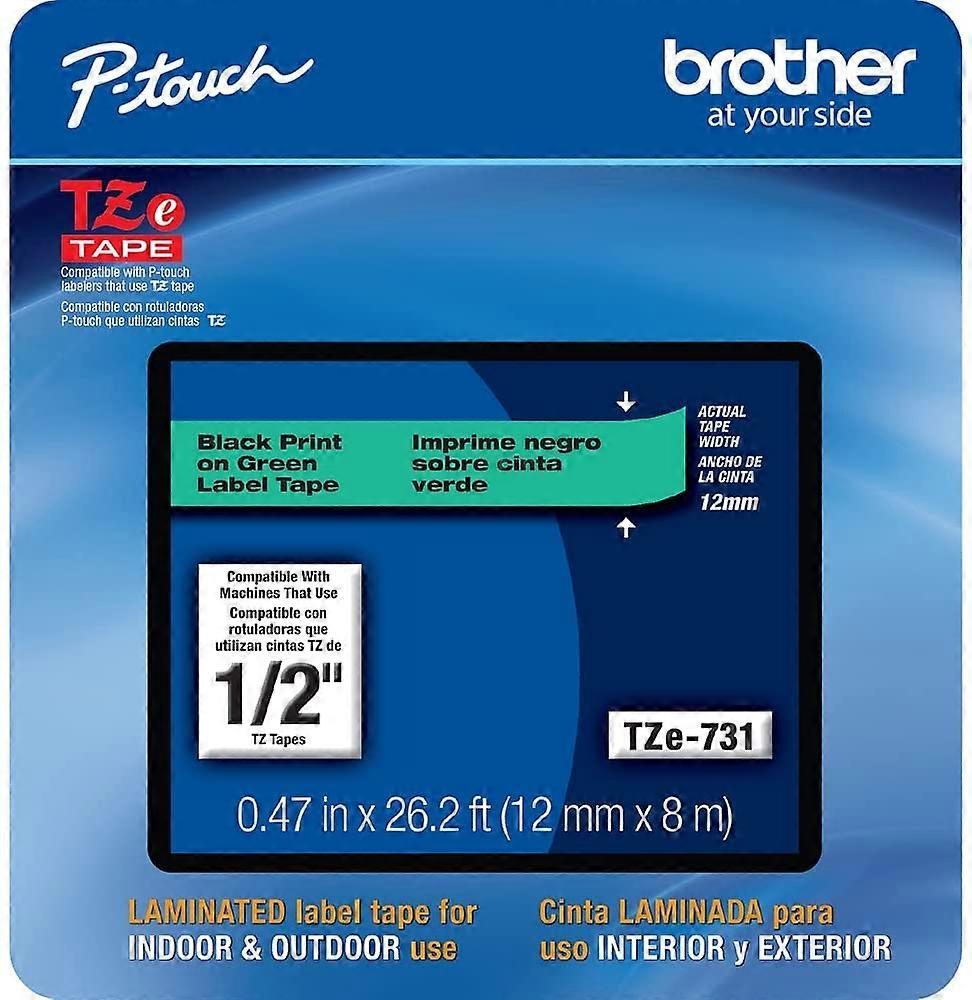 Genuine P-touch, TZe-731CS, 0.47” x 26.2’, Black on Green Laminated Label Tape