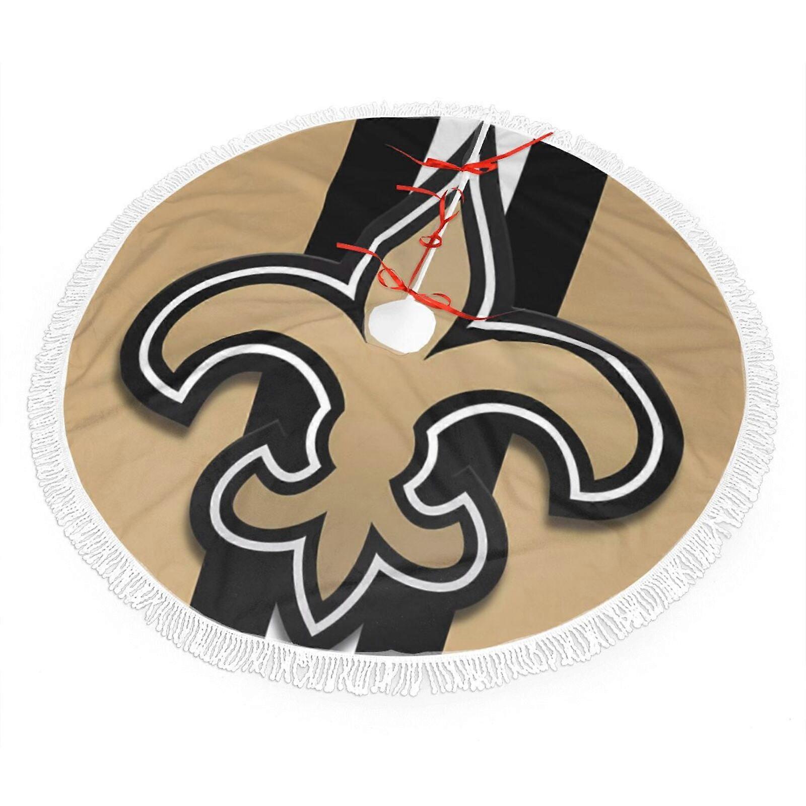 Saints Christmas Fringe Edge Plush Tree Skirt, compatible with NFL team decor, bright colors, easy install, great gift for fans (30" 36" 48")