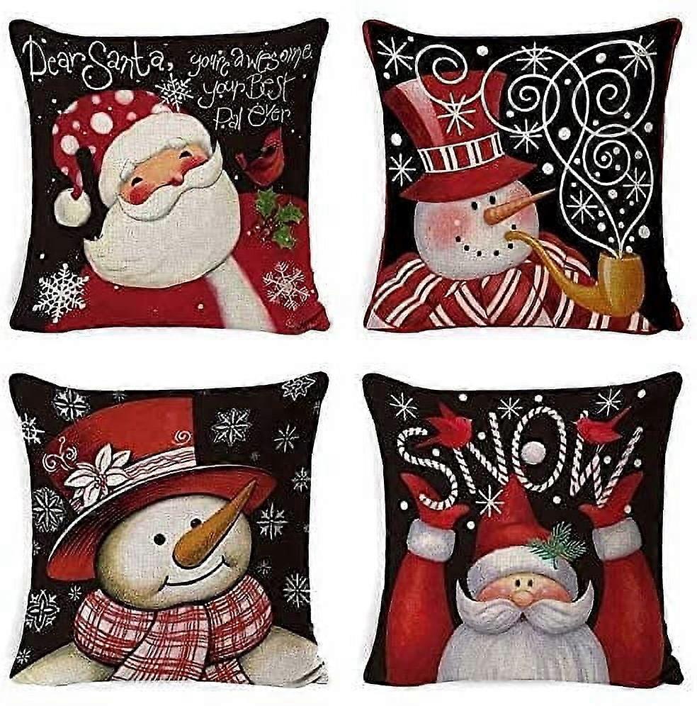 Christmas Pillow Covers 18x18 inch Set of 4, Cotton Linen Red Black, Home Decorative Throw Pillows
