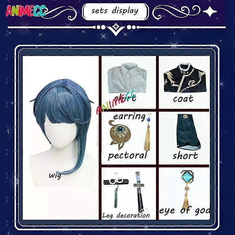 ANIMECC XingQiu Cosplay Costume Wig Game Genshin Impact Xing Qiu Cosplay Earrings Halloween Party Outfit for Women Girls