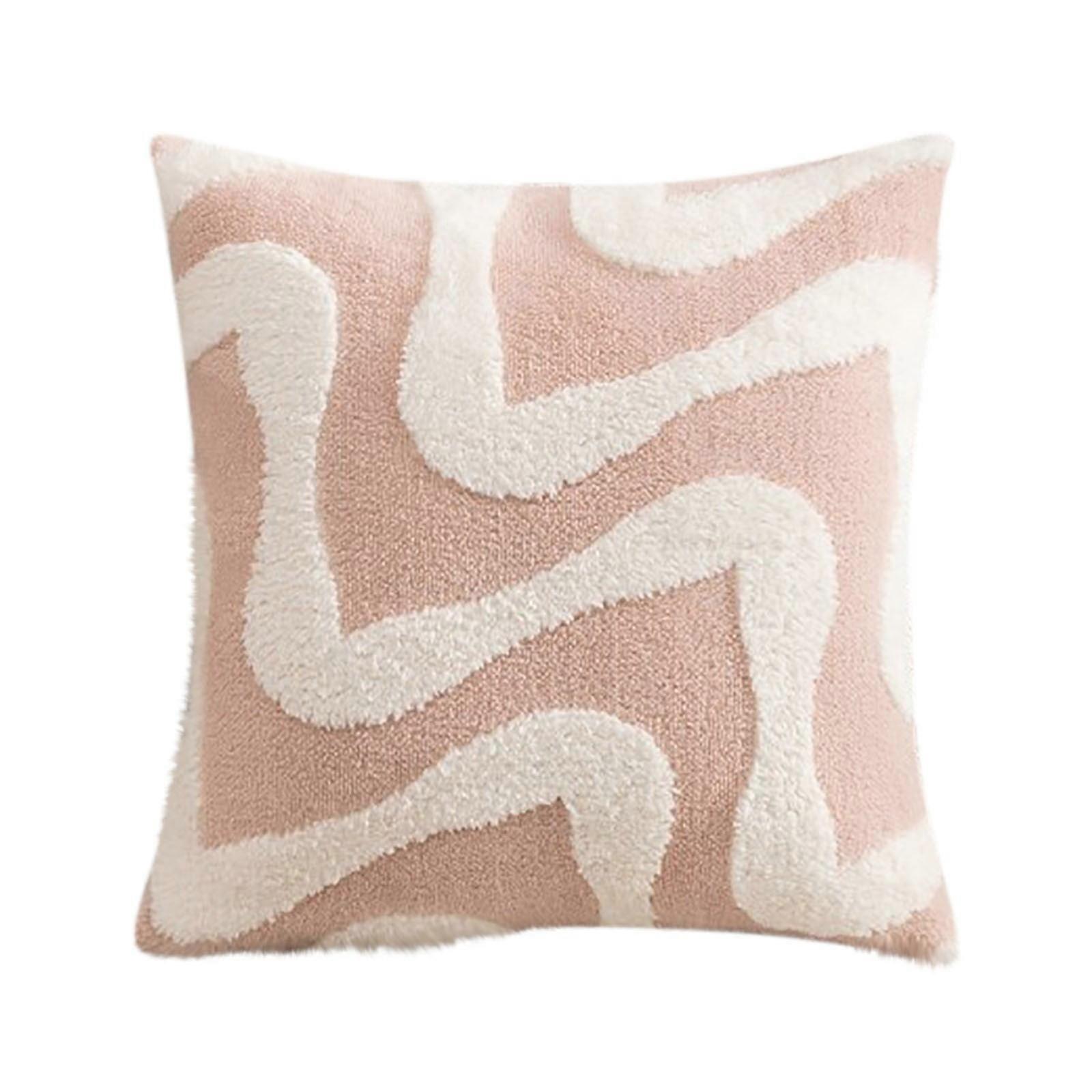 Boho Pillow Covers 18x18 inch, Embroidered Irregular Wave Pattern, Pink Decorative Cushion Cases for Couch, Sofa, Bed, Farmhouse Home Decor