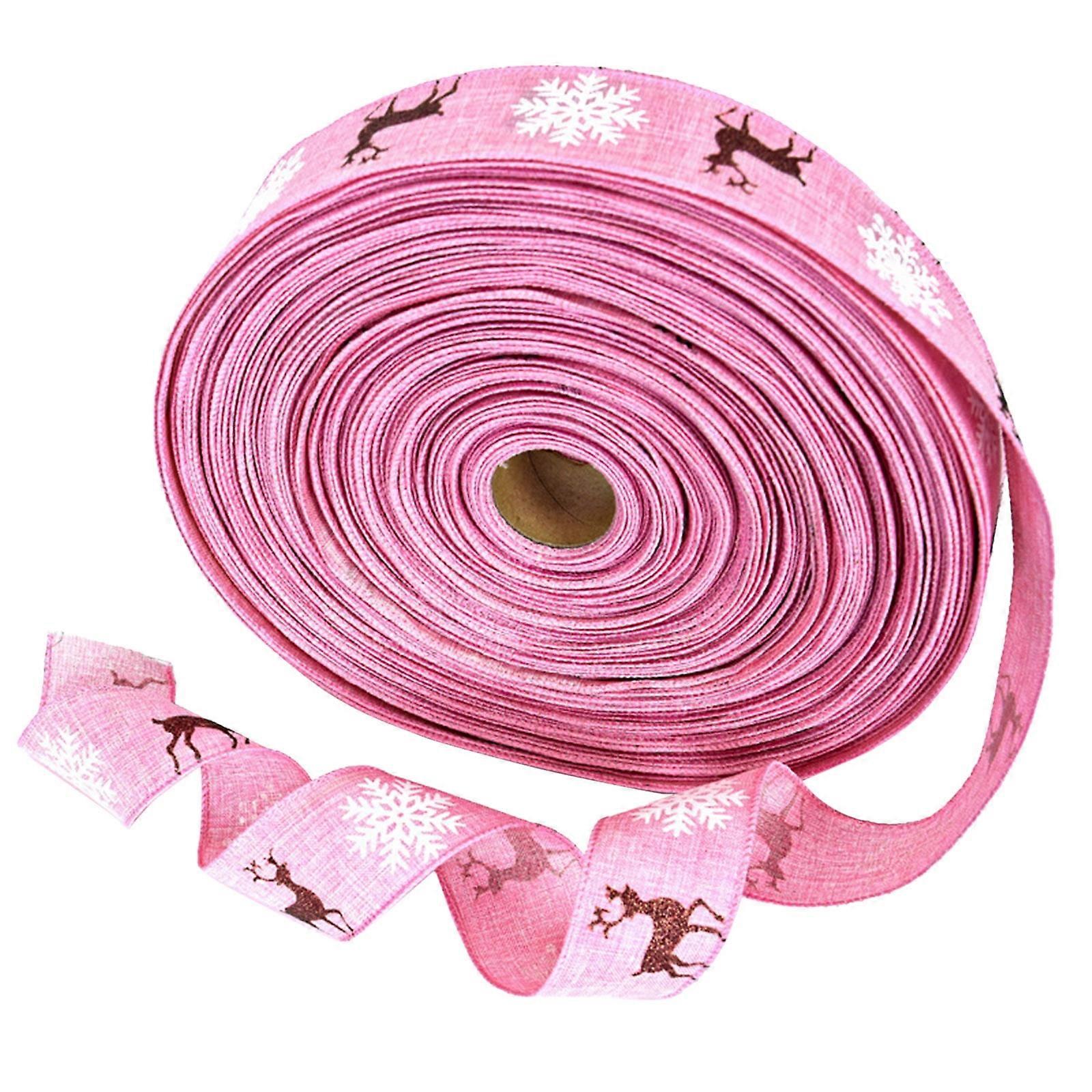Wuljfeng Christmas Gift Wrapping Paper with Burlap Ribbon, Snowflake, Elks, Santa & Tree Decor (Pink) - DIY Holiday Wrapping