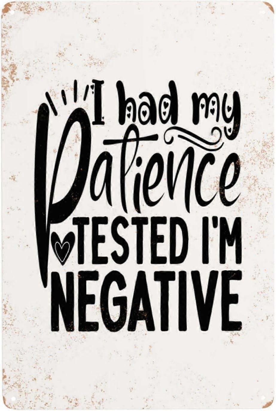 I Had My Patience Tested I'M Negative Vintage Funny Tin Sign, 8x12in Aluminum Metal Wall Art Decor for Home, Room Gift