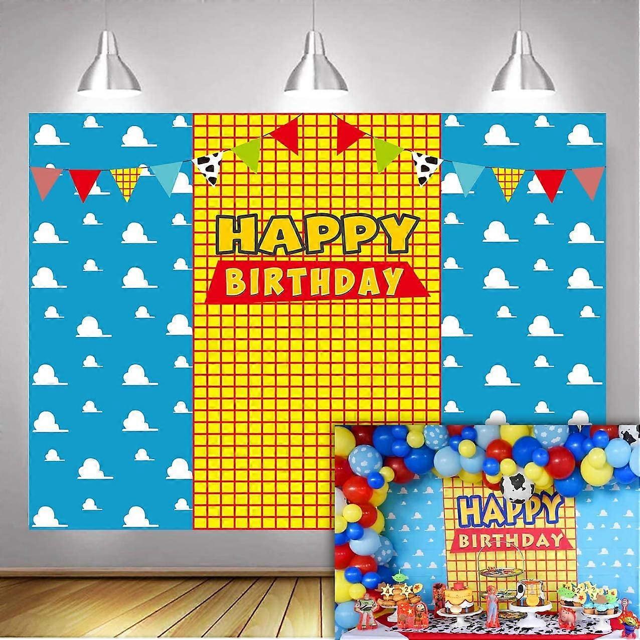 Blue Sky White Clouds Backdrops Story Backdrop for Kids Little Cowboy Cartoon Theme Birthday Party Decor Background 7x5ft