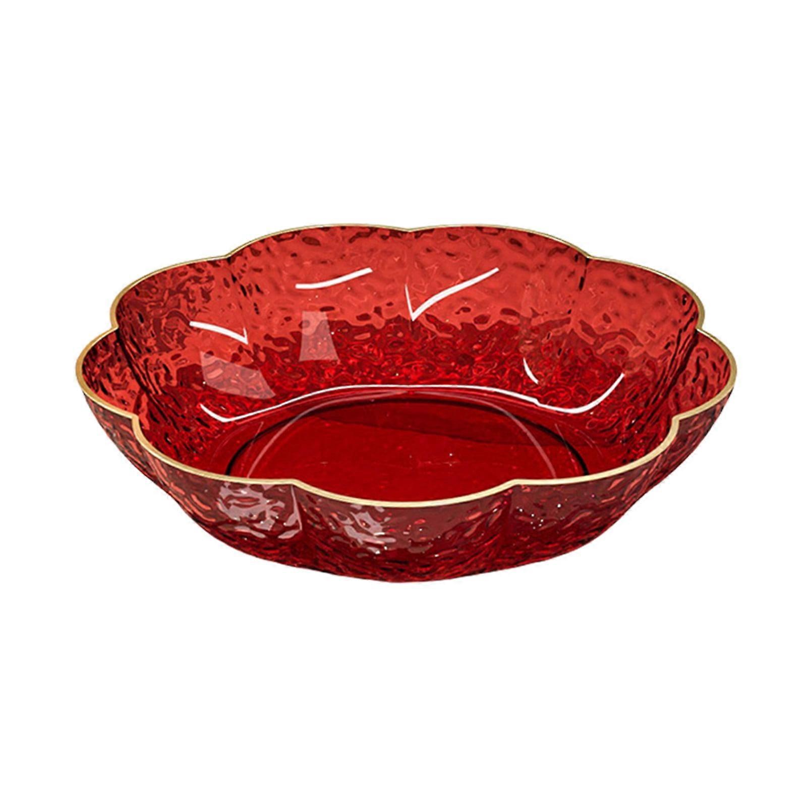 Clear Flower-Shaped Fruit Tray Salad Bowl, Snack & Serving Platter, Dried Fruit Bowl for Home Dining & Living Room (Red, 1pc)