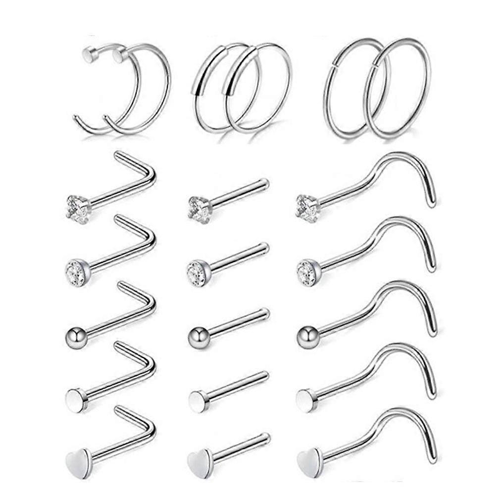 Dsseng 20G 21 Pcs Surgical Stainless Steel Nose Rings Hoop L Shaped Bone Screw Nose Rings Studs Nose Piercing Jewelry Set