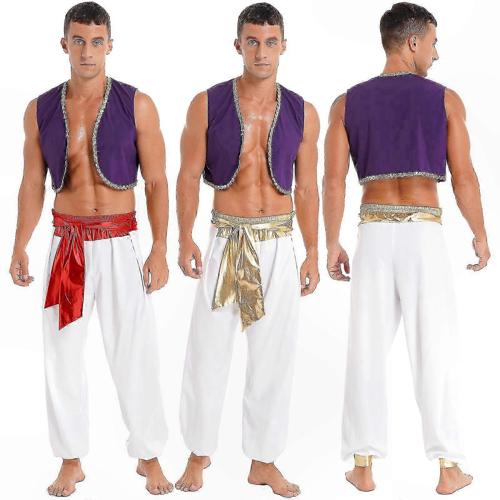 Men's Mythical Prince Costume with Sequin Waistcoat and Belted Pants for Halloween Cosplay and Carnival Parties
