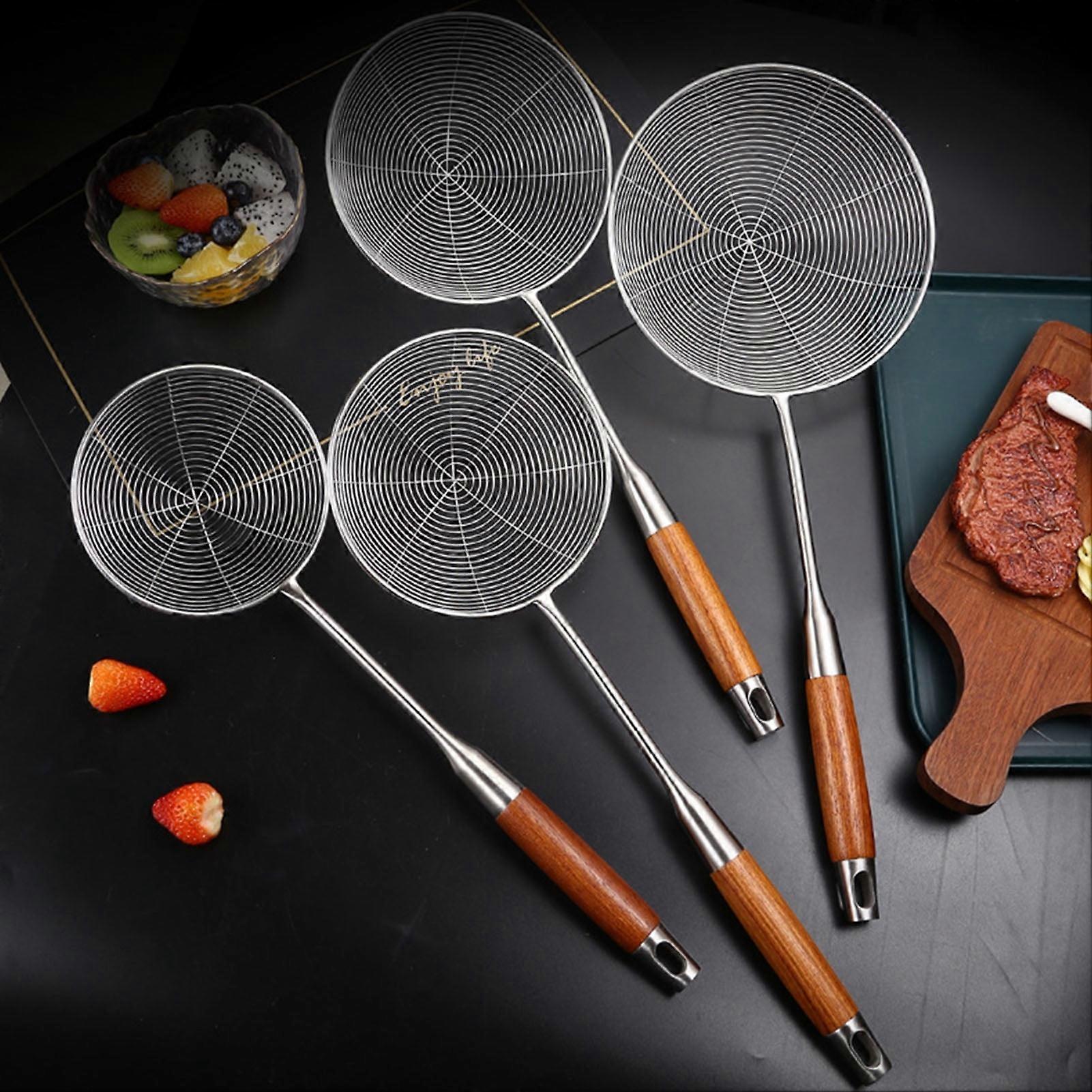 Ludlz Solid Stainless Steel Spider Strainer Skimmer Ladle for Cooking and Frying, Kitchen Utensils Wire Strainer Pasta Strainer Spoon