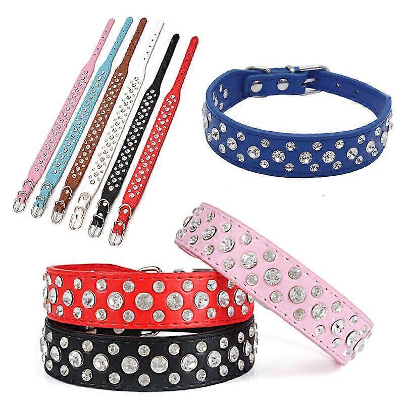 Rhinestone PU Leather Pet Dog Collar Bling Cute Cat Chain Choker Necklace Gifts