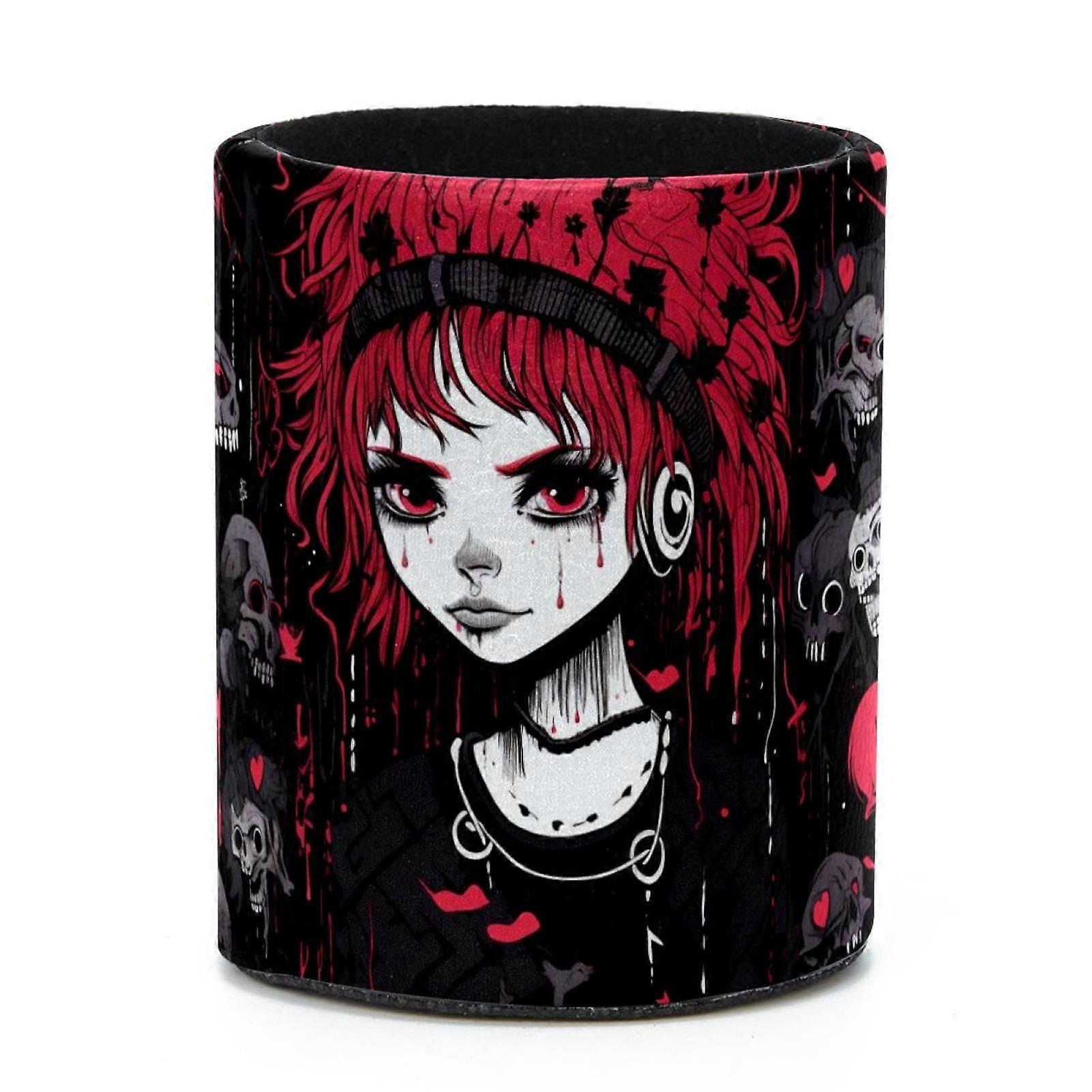 Stylish and Functional Cylindrical Pen Holder, the Perfect Desktop Organizer for Artists and Makeup Enthusiasts, Skull Punk Style