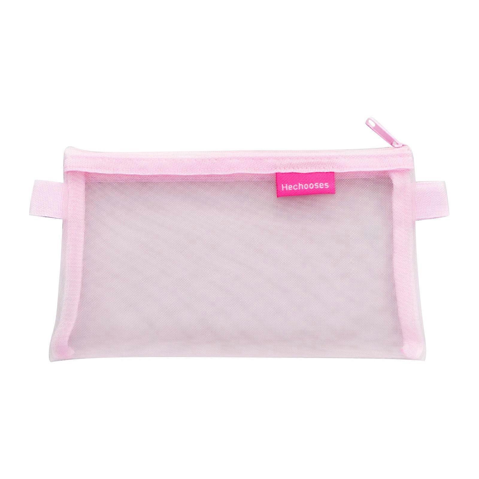 Ganenn Pencil Case Pouch, Transparent Mesh Pencil Case, Clear Cosmetic Bags, Zip Makeup Mesh Bags, Travel Toiletry Kit Set Storage Case (Pink)