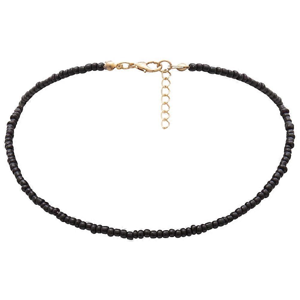 Ferencaa 1Pc Individual Character Beaded Single - Layer Necklace Simple Color Rice Bead Necklace (Black)