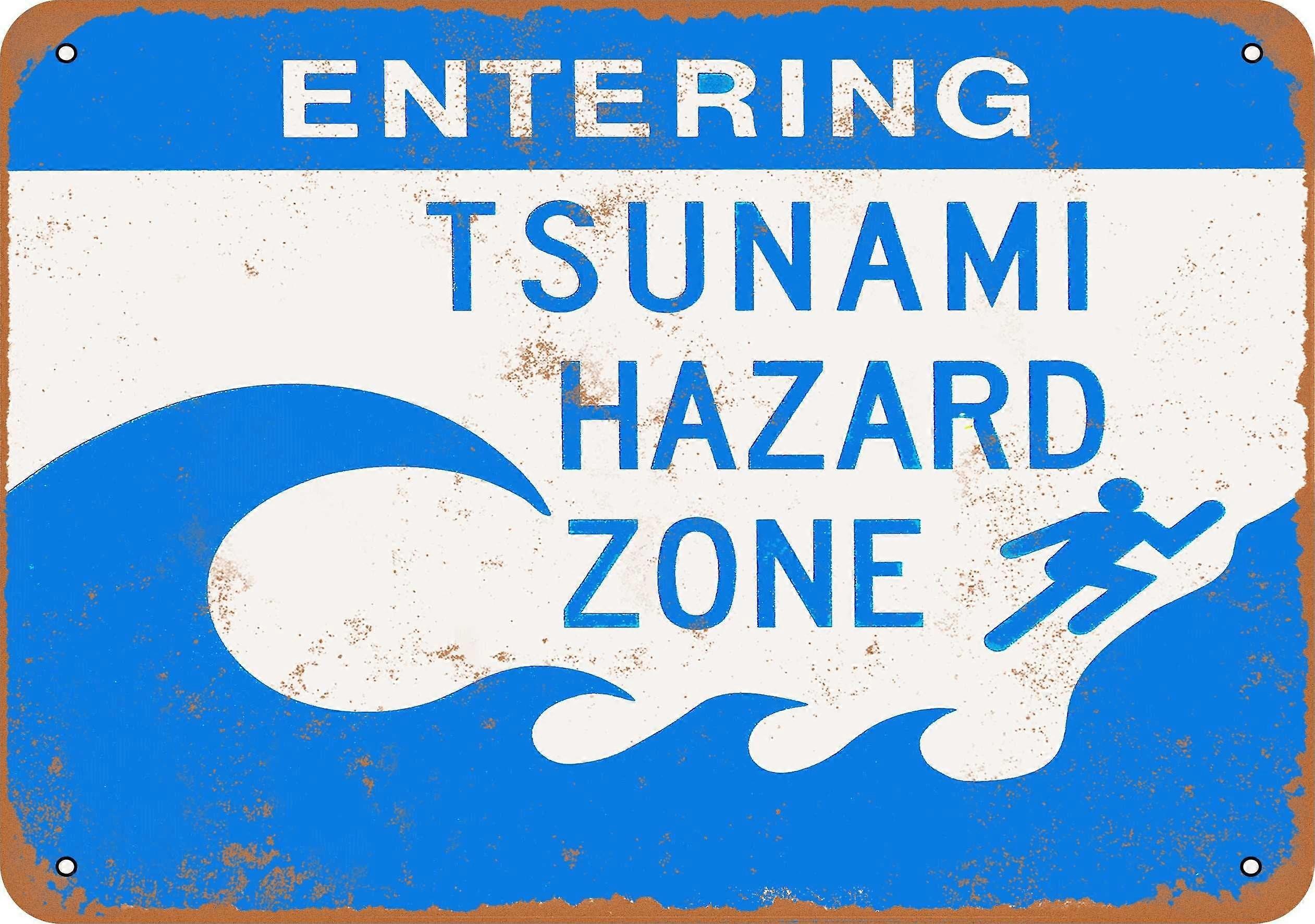 Metal Aluminium Sign - Entering Tsunami Hazard Zone - Vintage Look Size: 8 x 12 inch