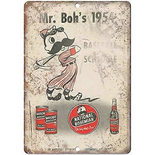 National Bohemian Beer Mr. Boh Vintage Ad Retro Wall Poster - 12x8" Aluminum Sign for BBQ Restaurant, Cafe, Room Decor