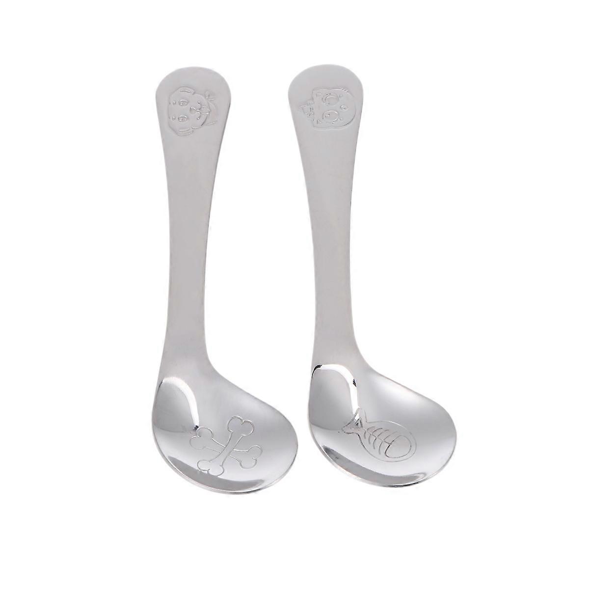 Baby Spoon Stainless Steel Elbow Spoon for Feeding Use 6Pcs Silver Cartoon