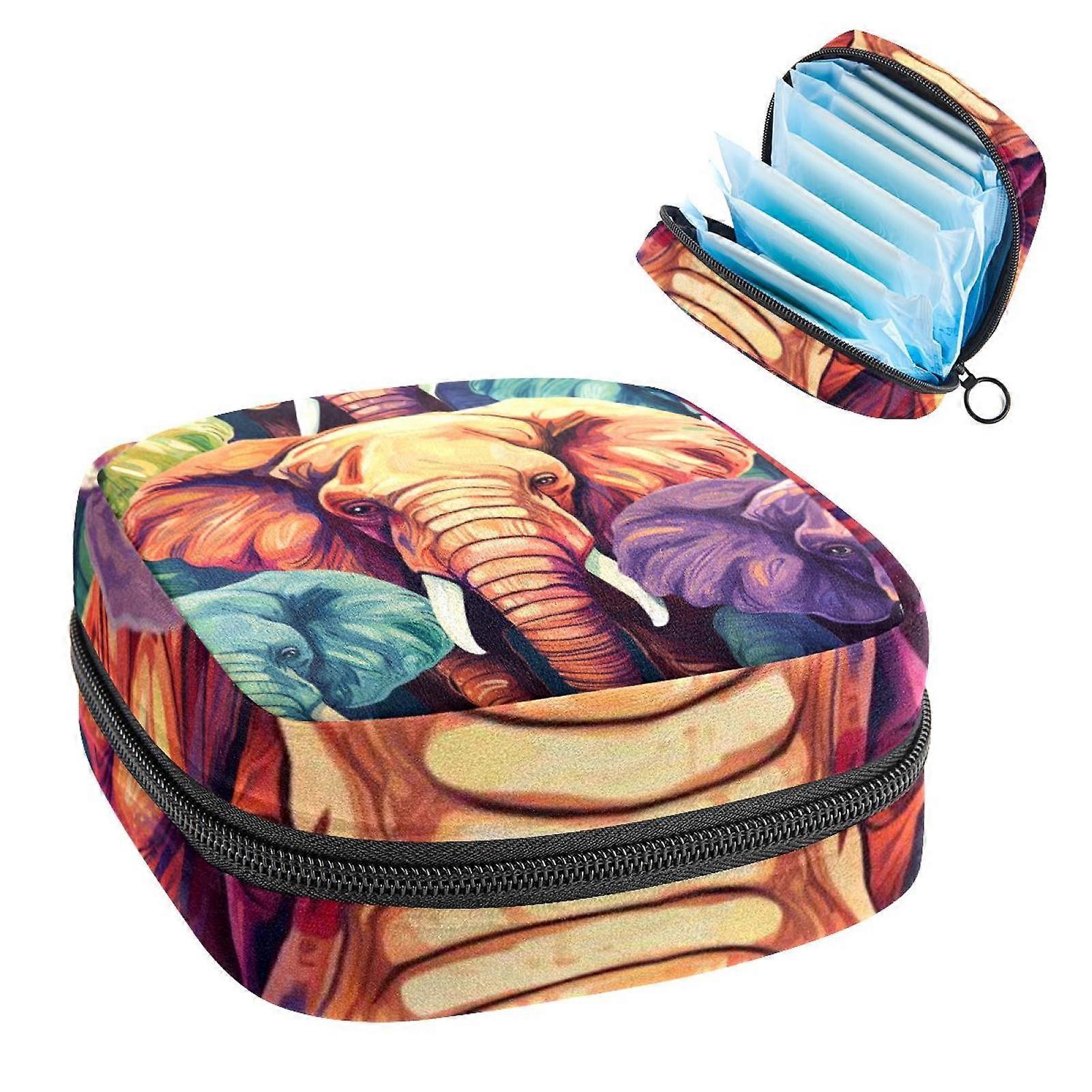 Elephant Sanitary Napkin Storage Bag Pad Bag Period Bag Travel Makeup Pouch, Velvet Fabric Sponge Oxford Cloth Material, 4.7x6.6x6.6 in, Pink Color