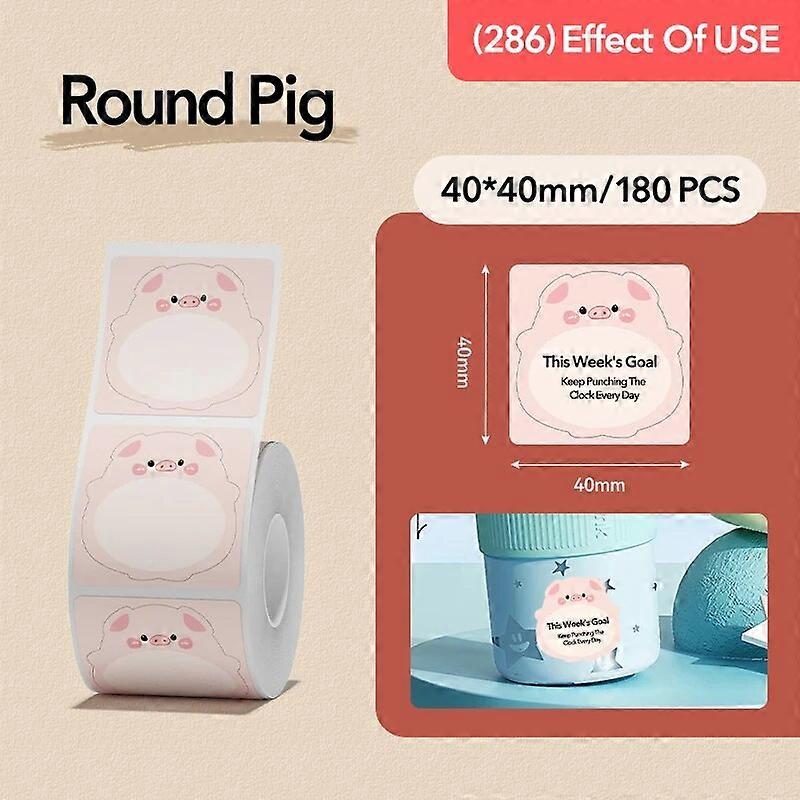 Niimbot Cartoon Pattern Thermal Label Sticker Paper Smart Portable Label Waterproof Stickers Fast Printing For B1/B21/B203/B3S 286-4040-Round Pig