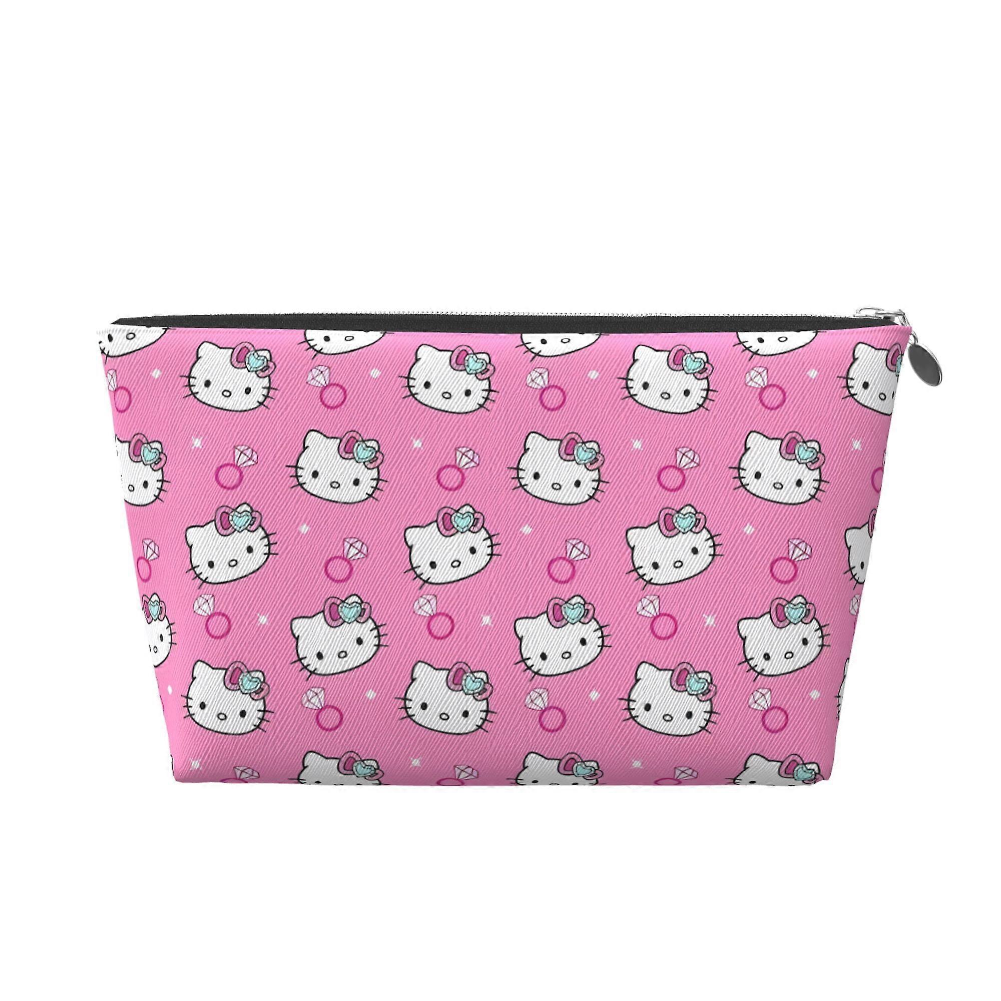 Hello Kitty Small Makeup Bag PVC Leather with Silver Zipper, Multi-Function Travel Toiletry Organizer – Compatible with Hello Kitty ✨