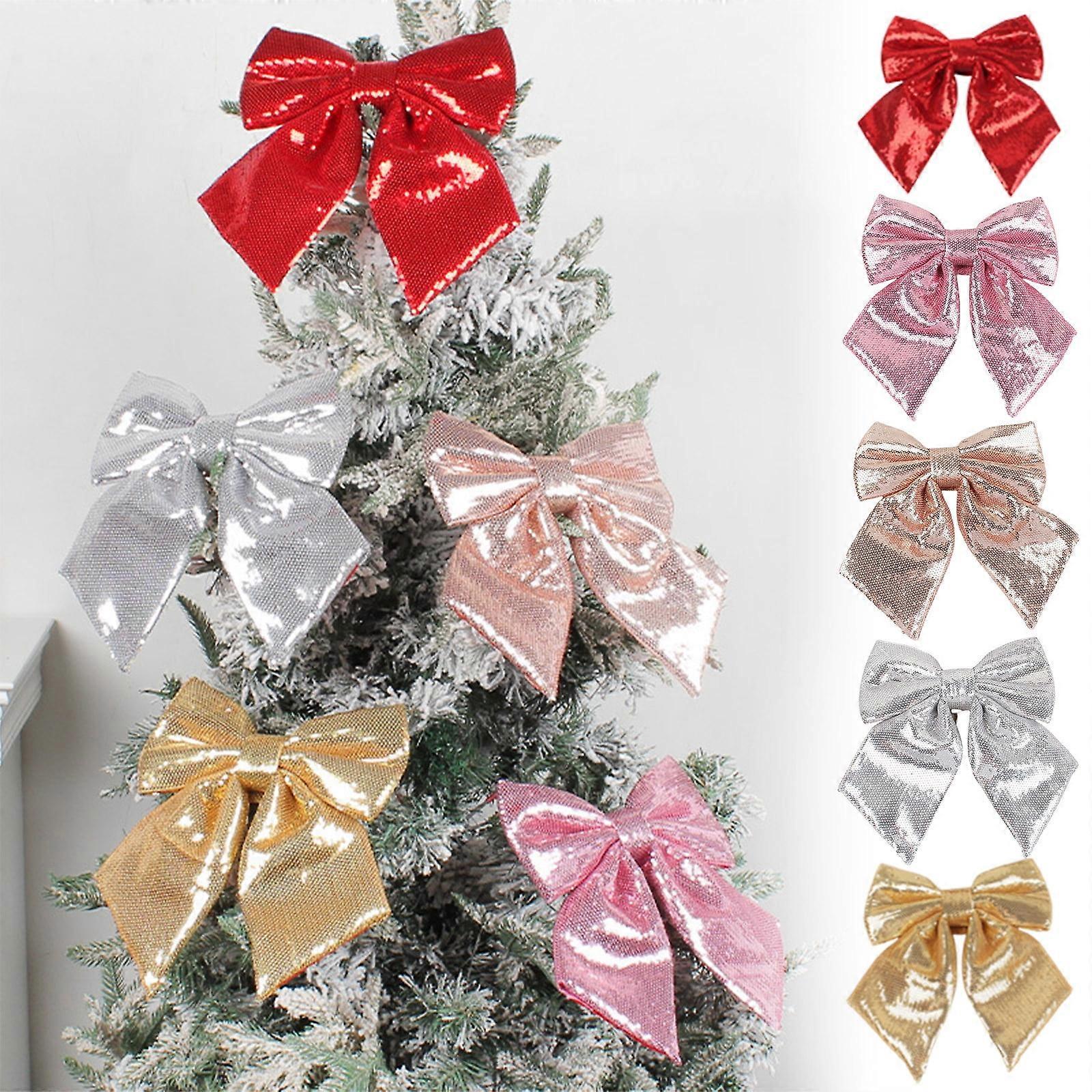 Jacenvly Clearance Christmas Tree Ornaments, Sequined Bow & Glitter Bow Tie, Wreath, Door, Window, Party, Wall Decor