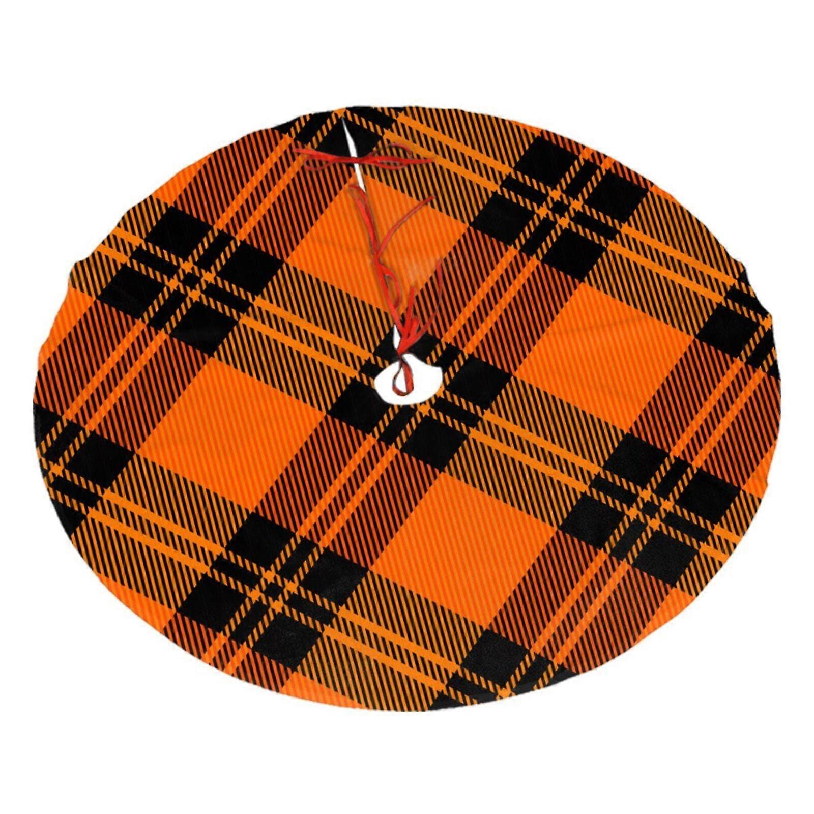 Dioganal Tartan Plaid Halloween Pattern Christmas Tree Skirt, Soft And Funny Merry Christmas Tree Collar Farmhouse Xmas Holiday Decoration 48"
