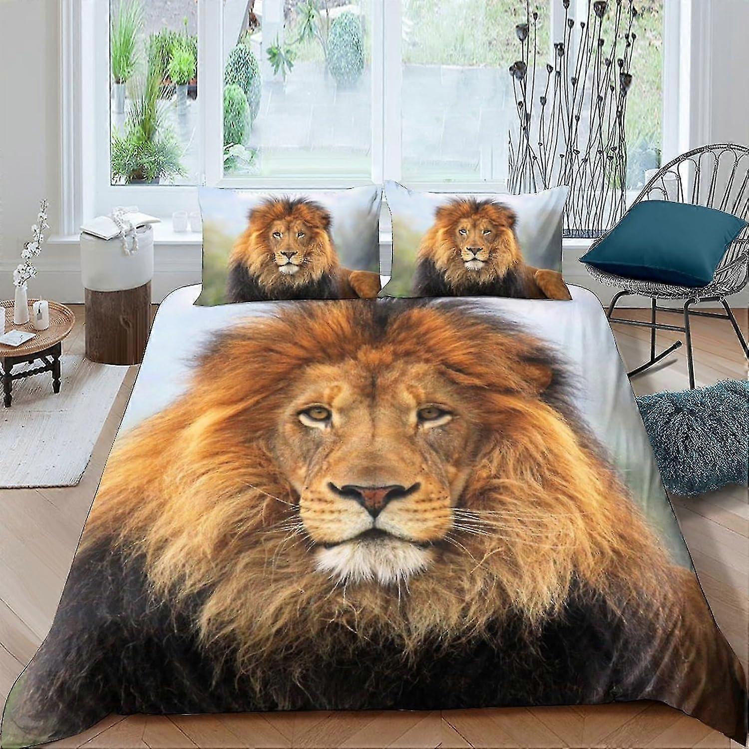 3D Lions Duvet Cover Set for Teen Boys, Microfiber Polyester King 3-Piece Bedding with Hidden Zipper