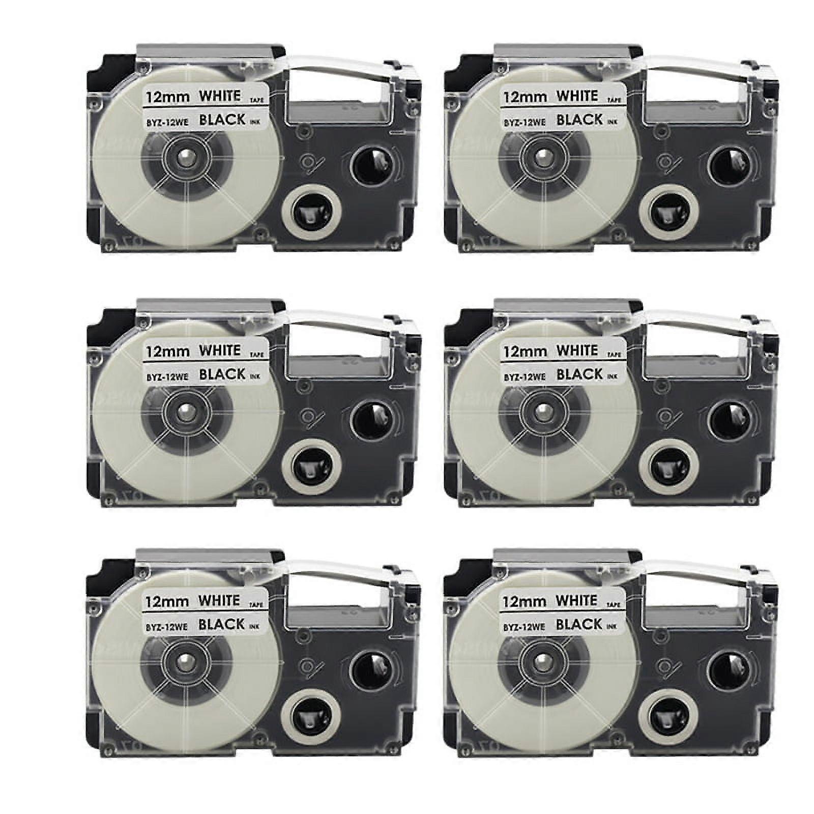 6 Pack 12mm Black on White Label Ribbon for -120 -E300 -60 -100 KL750B KL820 KL750 KL7200 Label Printer