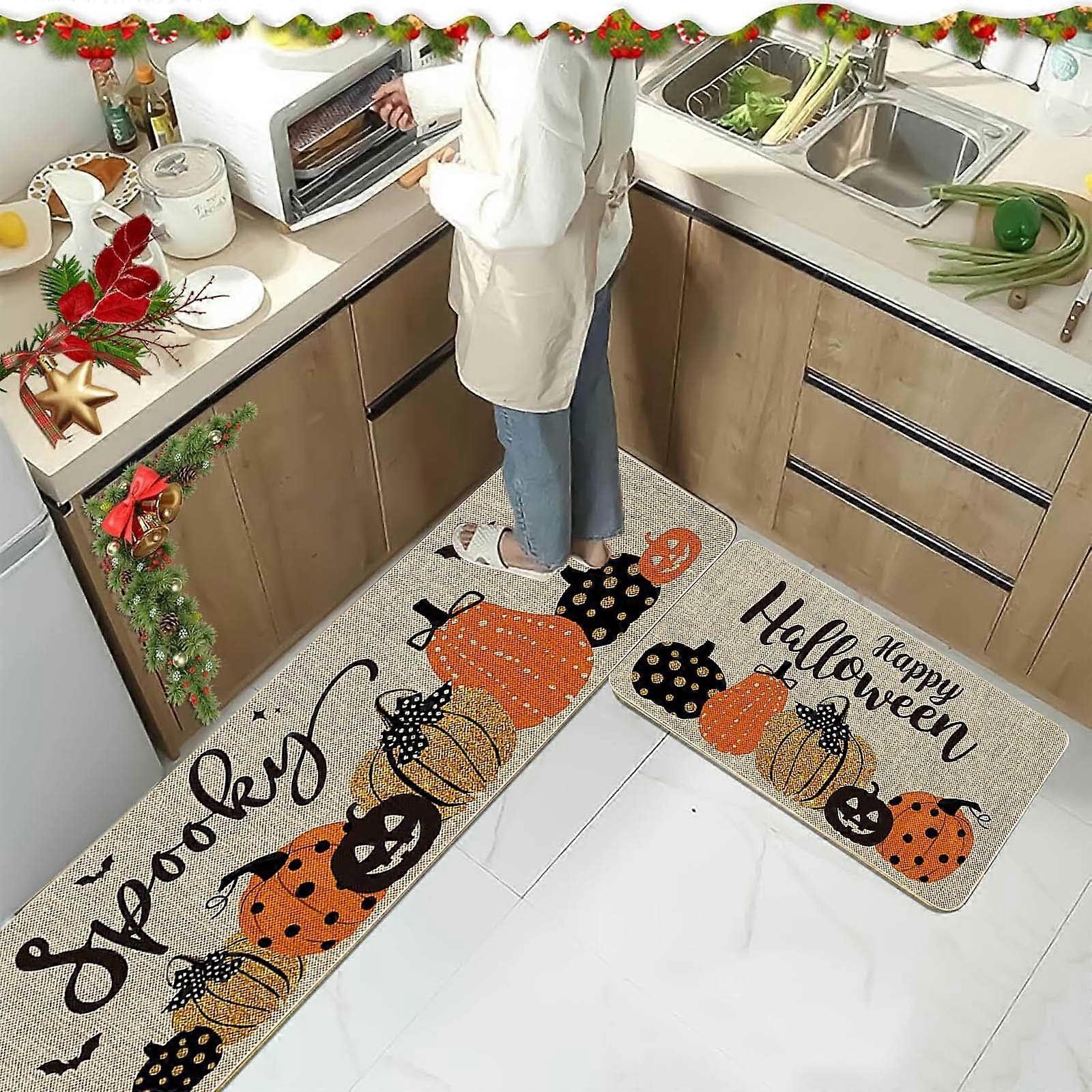 Jacenvly Clearance Fall Decor Outdoor Kitchen Floor Mat Halloween Pumpkin Carpet Home Entrance Door Mat Bathroom Dirt Floor Mat Wall Decor