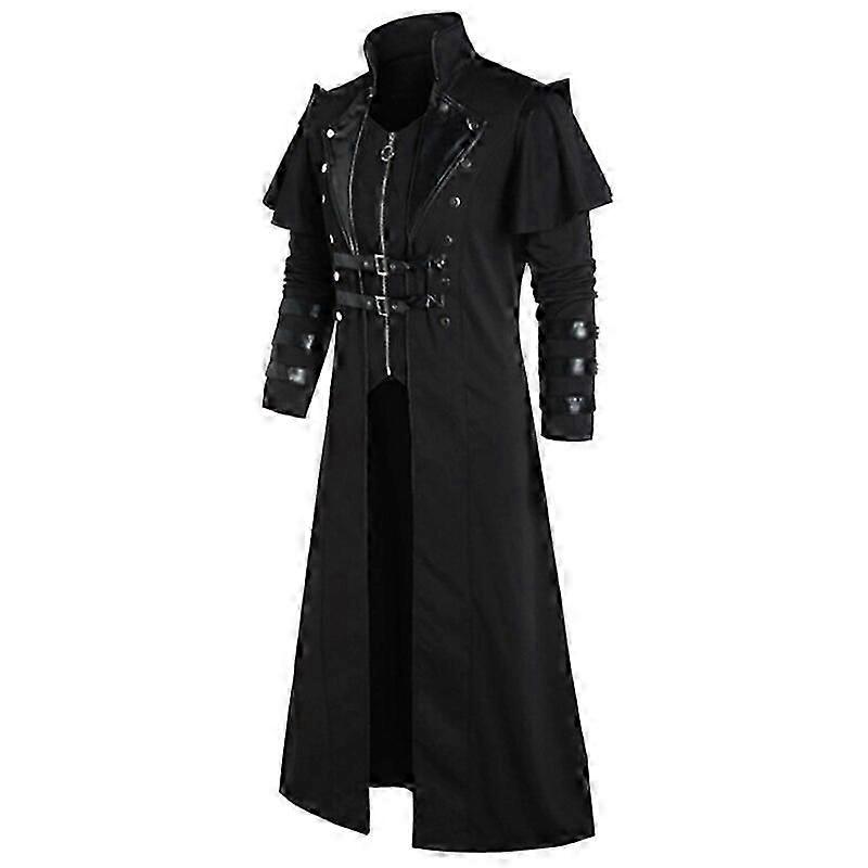 Vintage Halloween Medieval Steampunk Assassin Elves Pirate Costume Adult Men Black Long Split Jacket Gothic Armor Leather Coats - FKB