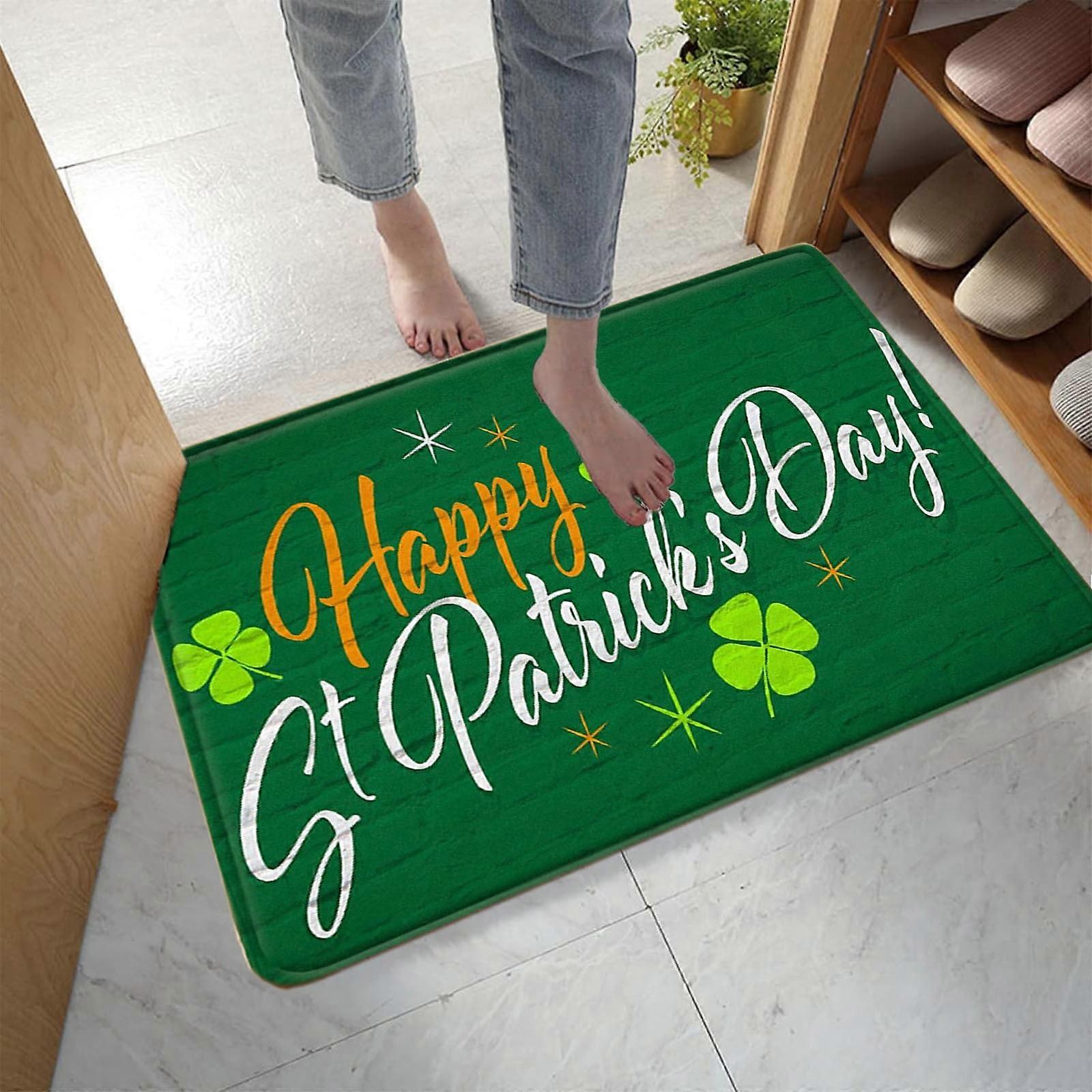 St. Patrick's Day Door Mat - Durable Front Door Mat - Bath Rug Super Absorbent Quick Dry - Rubber Backing Non Slip Washable Bathroom Floor Mats -Green 16x24 IN Features: Material :Polyester Back Material: Rubber Pile Height: Low Pile Color: Green Product size: 40cmx60cm / 16x24in Packing size: 35cmx10cmx10cm /13.77x3.93x3.93in Gross weight: 240g/0.52lb Net weight: 240g/0.52lb Style: St. Patrick's Day, Festival, Party, Morden Product Description: 【Stylish St. Patrick's Day Rug】 Bring festive spirit into your house with St. Patrick's Day mats Indoor. bright colors and cute design of welcome mat outdoor will brightens your porch, patio, or veranda and cheer your arriving guests. 【High Grade】The rug is made of imitation fabric cotton, the thick material is elegant and luxurious, durable and comfortable, a great outdoor rug. 【Perfect Non-Slip on Wet Floor】high quality rubber backing bath mats. It can grip on wet and floor tightly and flatly without skidding or curling up, minimize the risk of slipping of kids and elderly. Hurry to say goodbye to traditional slippery TPE/TPR backing bath rugs for bathroom. 【Wide Use】It's more than a mat for in front of the door. You can use it wherever it is easy to get wet or wherever you want to your feet. As thin bathroom rugs fix under door, it can suitable laundry room mat, kitchen mat, pet feeding mat, desk mat, in front of sink mat, rv bath mat etc. This rug is an essential for any style space. 【Lovely St. Patrick's Day Present 】Get your lover into a festive mood with St. Patrick's Day welcome mat. Adorable colors and cute patterns of outside door mats are a wonderful way to wish Merry St. Patrick's Day and a happy New Year. Package Content: 1x St. Patrick's Day Rug Premium Quality Fabric - Our St. Patrick's decorations are of exceptional quality, made of high-density, double-thickness material that is durable, weatherproof and machine washable! Wide Application - This St. Patrick's Day decoration can be used for any outdoor home decor, backyard, lawn, garden, deck, patio, porch or balcony. St. Patrick's Gifts - These seasonal decorations are suitable gifts for family, friends. Different important holidays, seasons and family occasions for you to create a strong seasonal or holiday atmosphere. Warranty - Feel free to contact with us if meet with problems as we offer 30 days replacement or full refund BEAUTIFUL BLESSINGS - We hope you have a happy holiday season after purchasing one of our products!