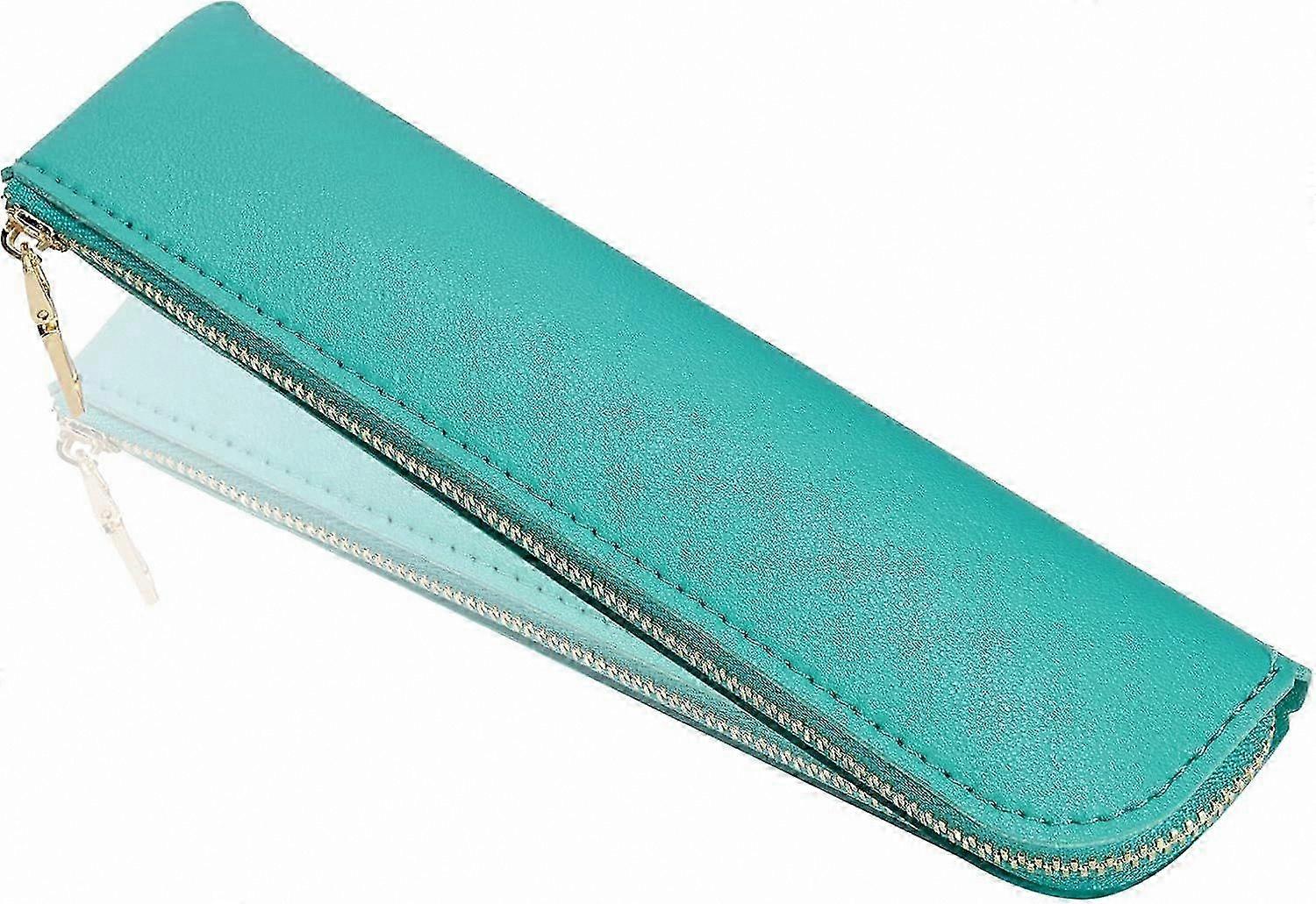 Zippered Minimal Pencil Pouch, Thin Soft Pen Bag, Compact Leather Pencil Case for Adults, Small Zipper Organizer for Writing Tools