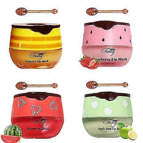 4 PCS Bee Lip Balm Honey Pot,Lip Mask Propolis Moisturizing,Prevention Dry and Cracked Lip Scrubs Exfoliator Lip Wrinkle Skin Care Products
