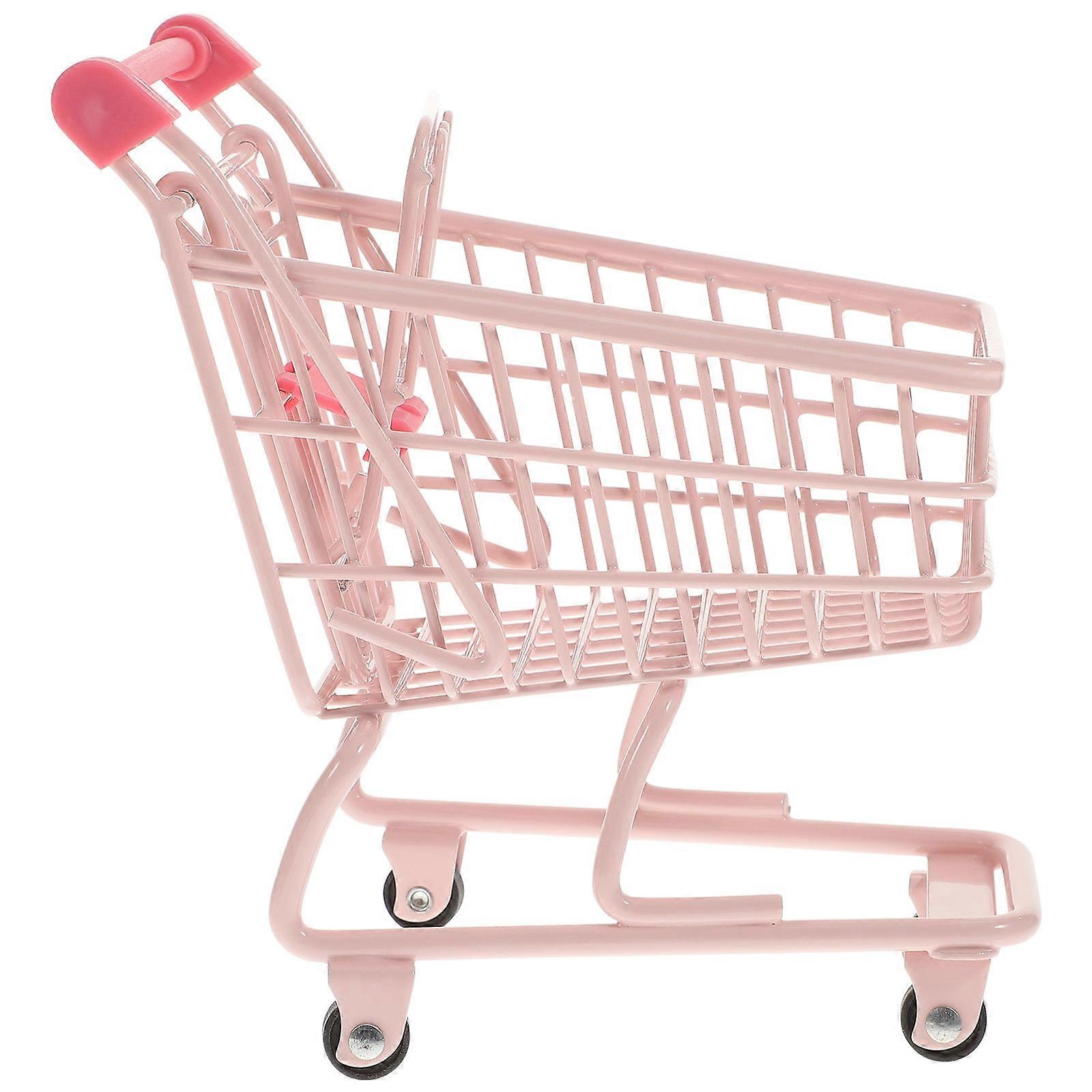 Pink Mini Trolly Storage Basket for Office Desk Use 1Pcs Shopping Cart