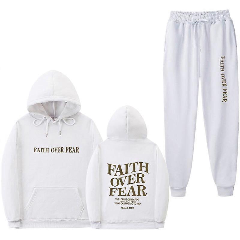 Men's and women's casual ribbed hem hoodie set Fear print sweatshirt and sweatpants