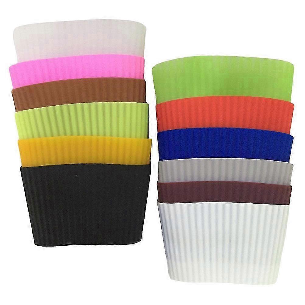 12 Pcs Silicone Mug Sleeve Set, Heat Insulated Non-Skid Protective Cover, Assorted Colors For Daily Use