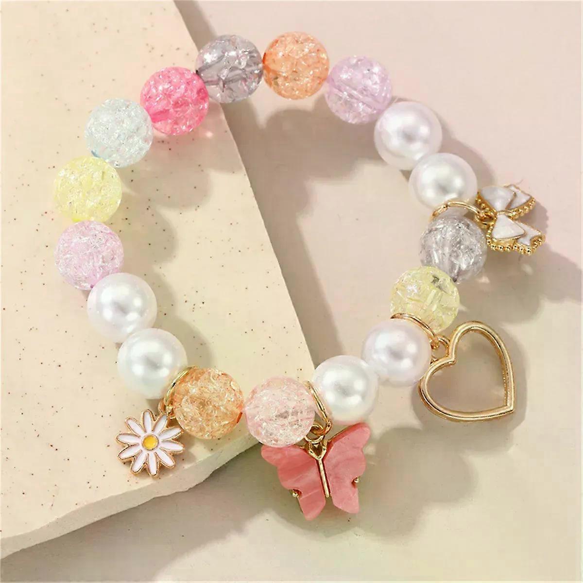 Cute Girls Popcorn Beads Bracelet with Glass Imitation Pearl Heart Butterfly Flower Bow - Jewelry Accessories for Friendship