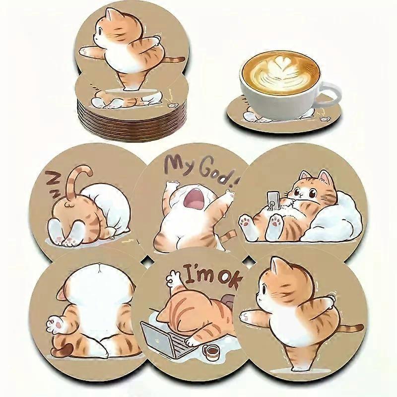 Cat Lover Coaster Set - 6-Color Wooden Drink Tray | Suitable for Restaurants and Coffee Shops | Easy To Wash and Clean