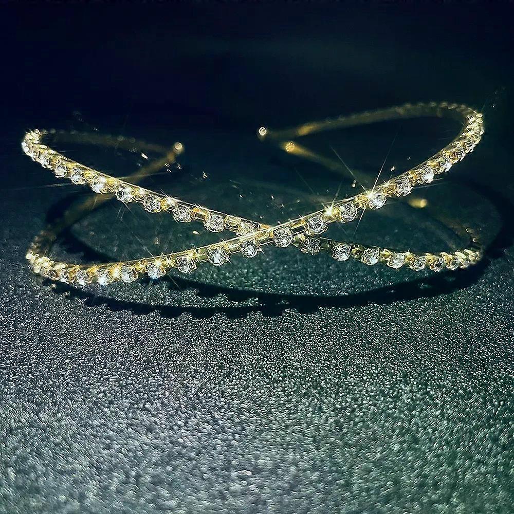 Fashion Bridal Hairband Rhinestone Headband Bride Wedding Hair Accessories Women Crystal Hair Bands Cross Headpiece Jewelry
