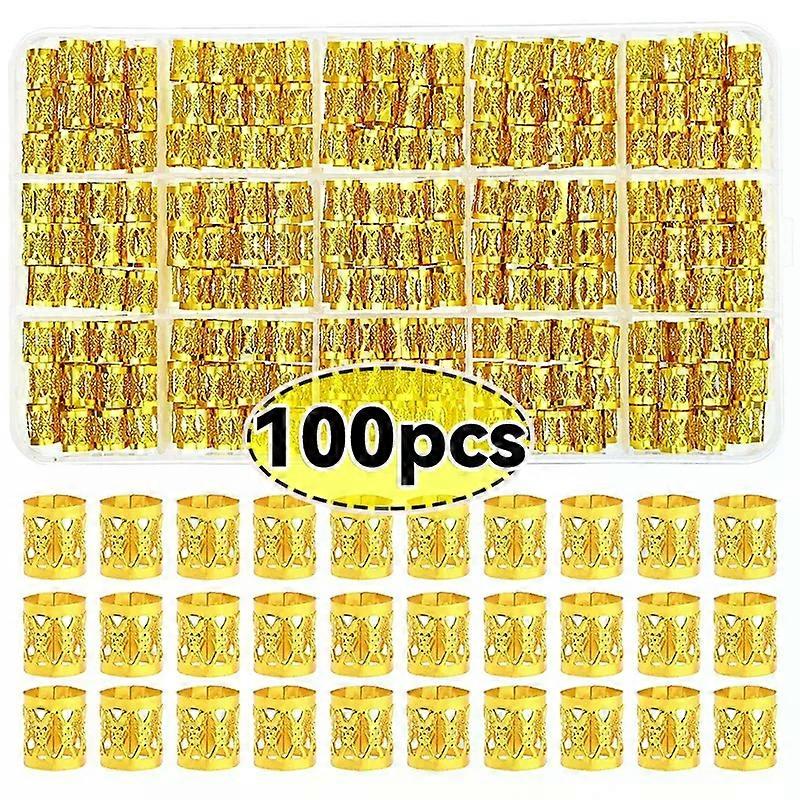100pcs Gold Silver Colorful Dreadlock Hair Rings Adjustable Cuff Hair Clip Dirty Braids Beads Hairpin Jewelry Hair Accessories