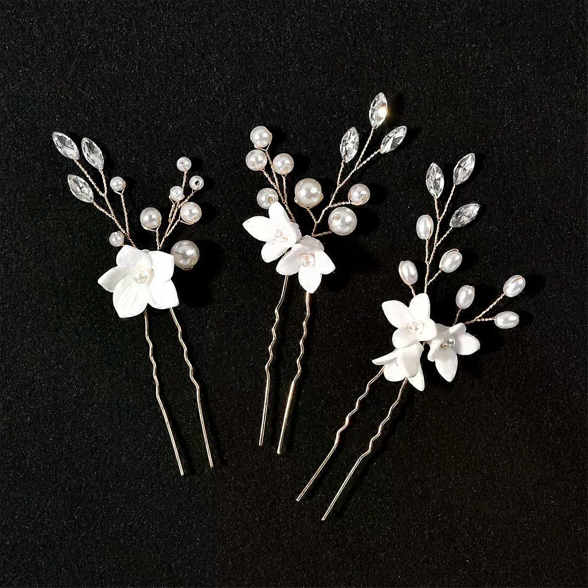 Three-piece U-shaped Pearl Flower Hairpin Ladies Bride Fashion Alloy hair accessories Wedding jewelry headpiece