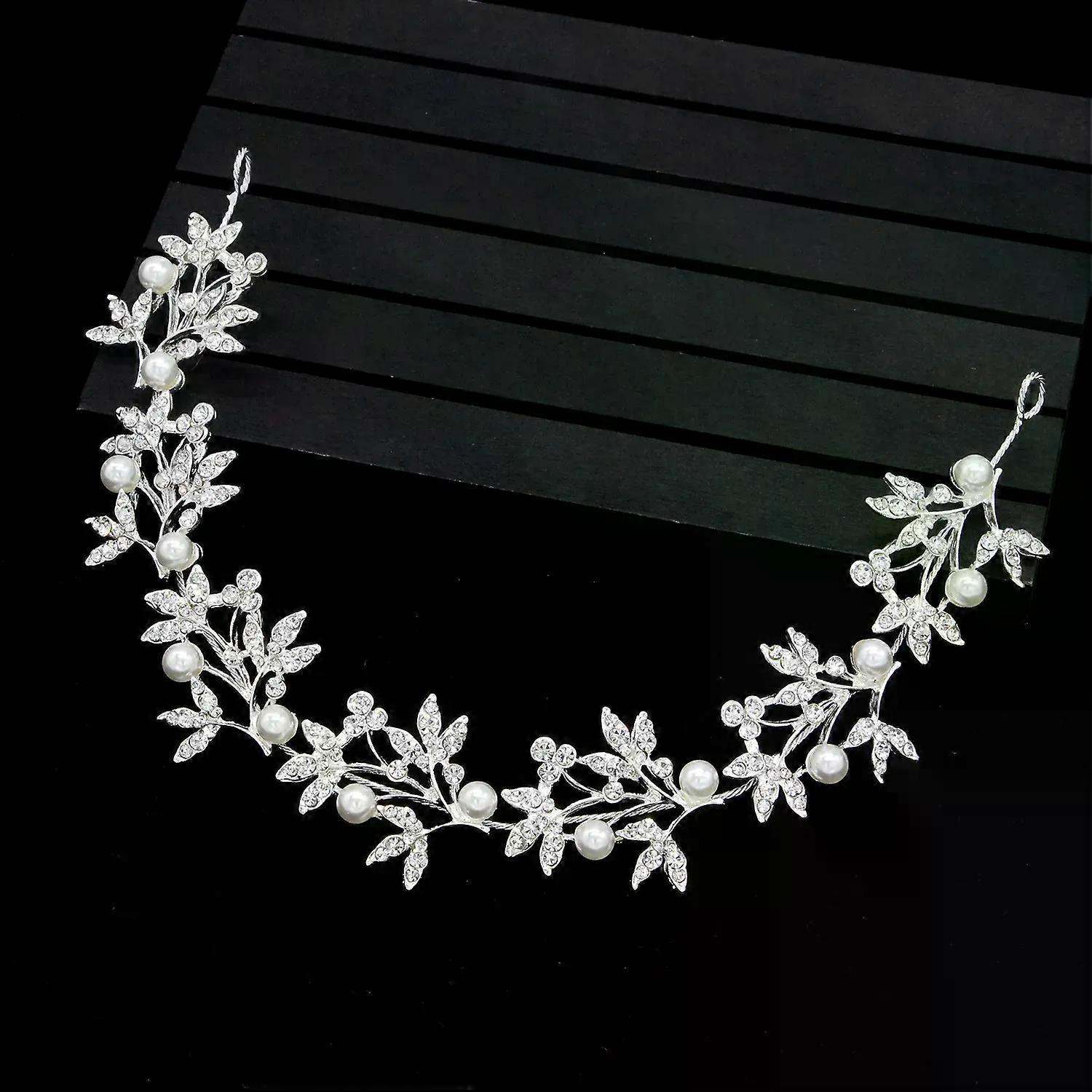 Fashion Bridal Hairband Sliver Rhinestone Pearl Women Hair Accessories Flower and Leaf Aolly Jewelry Hair Headpiece For Wedding