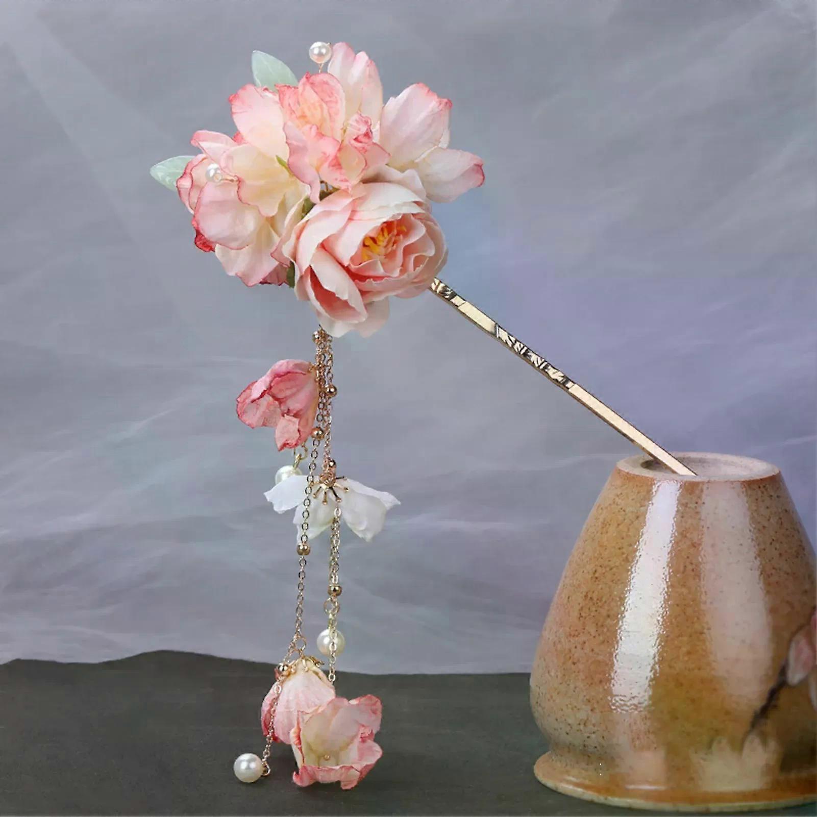 Big Flower Hair Sticks Forks Gold Color Metal Wooden Hairpins Clips Women Hair Bun Maker Jewelry Chinsese Step Shake Headpieces
