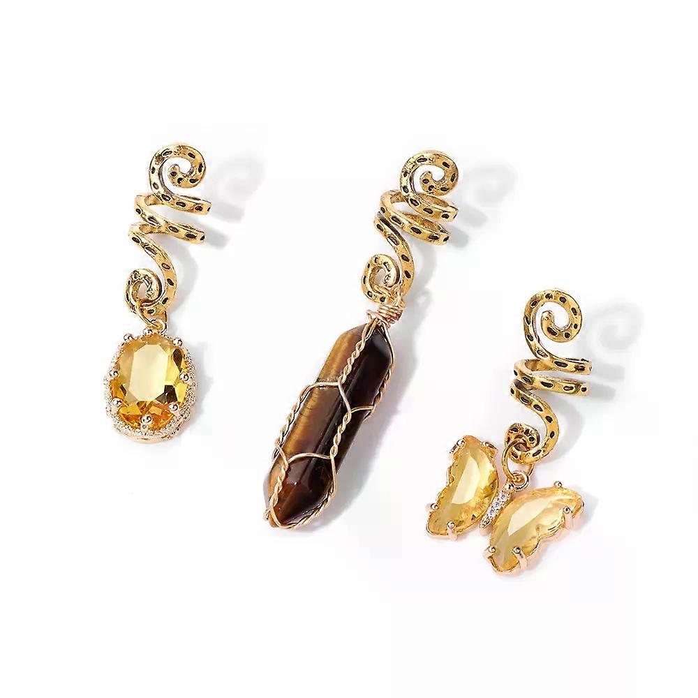 3pcs/set Crystal Hair Jewelry For Women Hexagonal Column Butterfly Charm Dreadlock Headwear Dangle Dreadlock Hair Accessories
