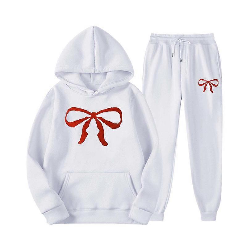 Men's and women's sweatshirt suits, loose casual sports hoodie two-piece set with printed bow sweatshirt
