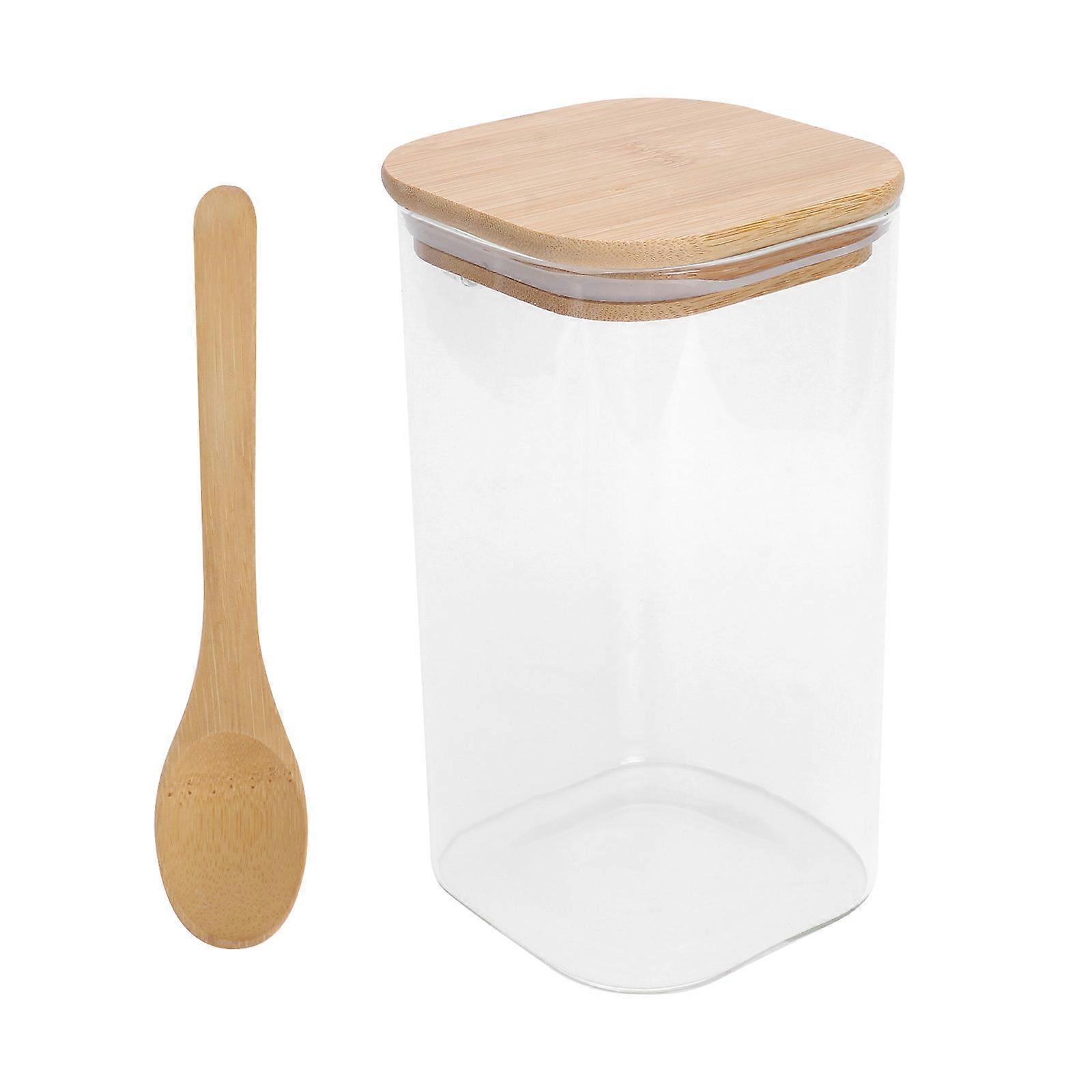 Food Storage Jars Glass And Wood Material For Kitchen Use Certified 1200ml Capacity 1Set