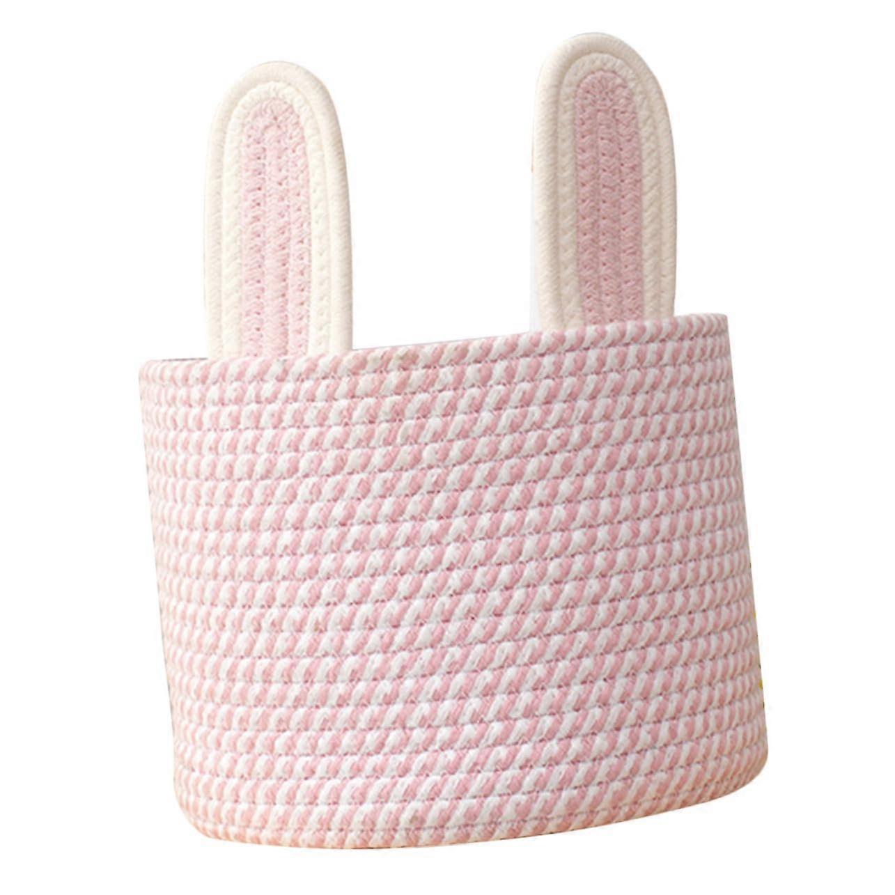 Cotton Rope Storage Basket With Bunny Ears, Neutral Pink Woven Organizer For Home, Bedroom, Bathroom, Office, Cosmetics