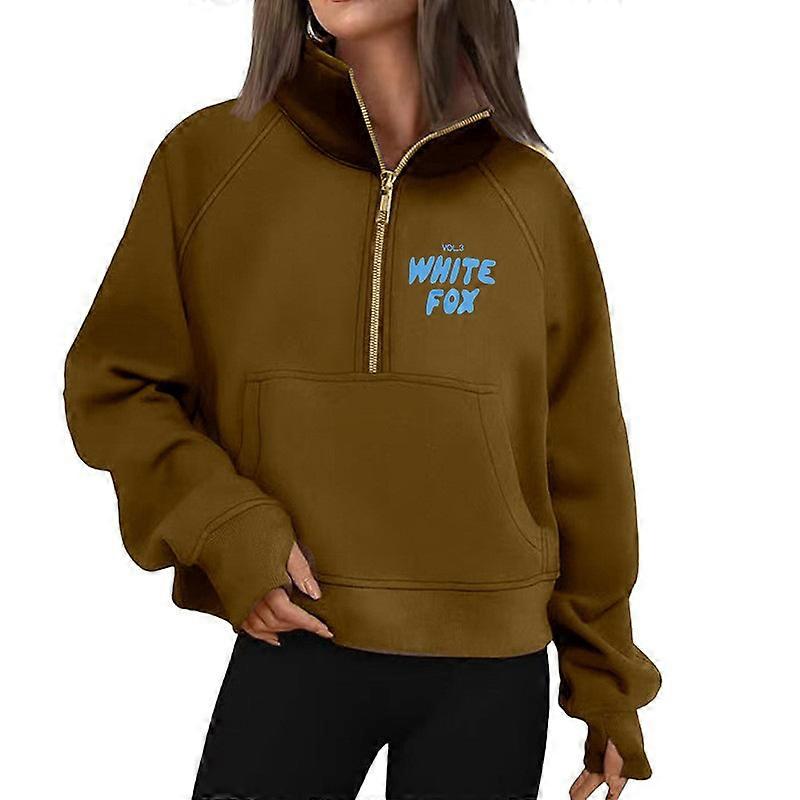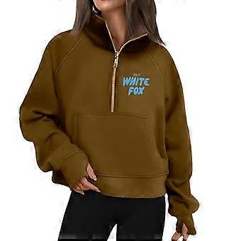 2025 White Fox Loose Half Zipper Pocket Long Sleeve Sweater Print Jacket