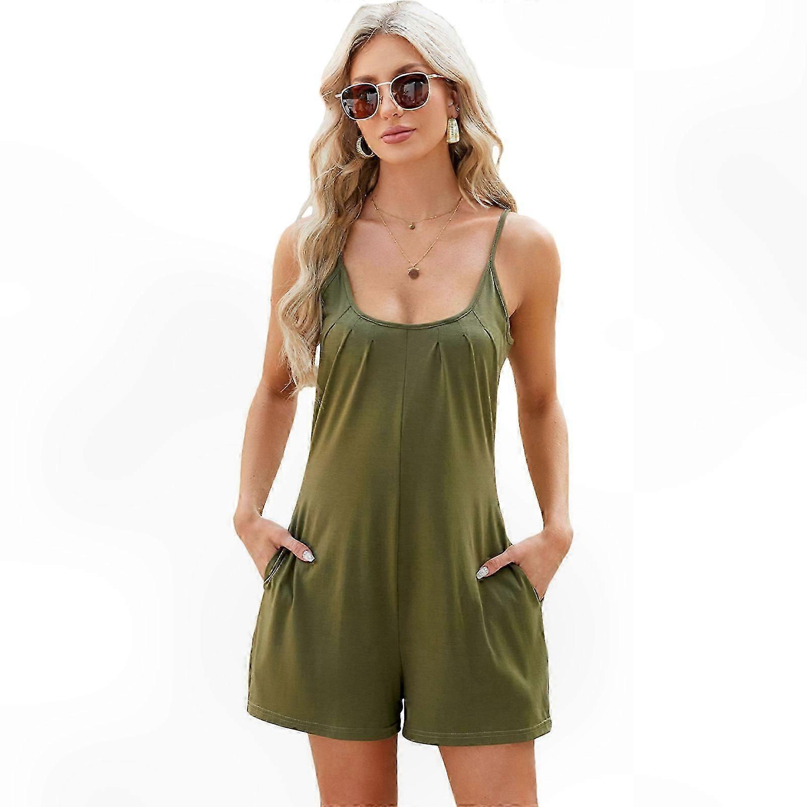Women's Blue Green XXL Spaghetti Strap Romper with Pockets, Loose Sleeveless Wide Leg Jumpsuit Playsuit