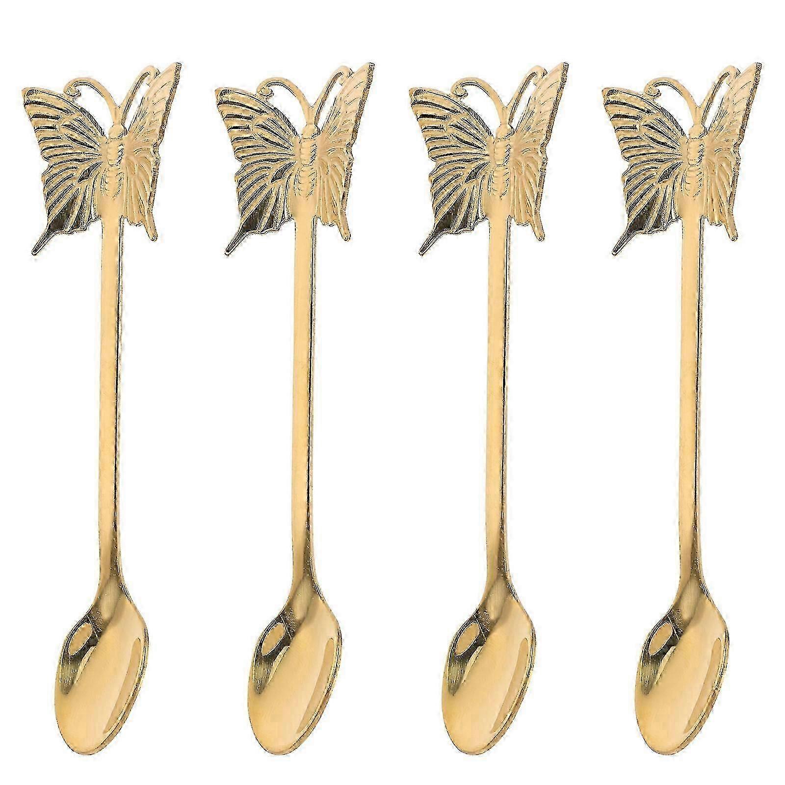 Long Handle Teaspoon Stainless Steel Long Handle Spoons Hotels 13.50x2.00x0.30cm Golden Eating Desserts 4pcs
